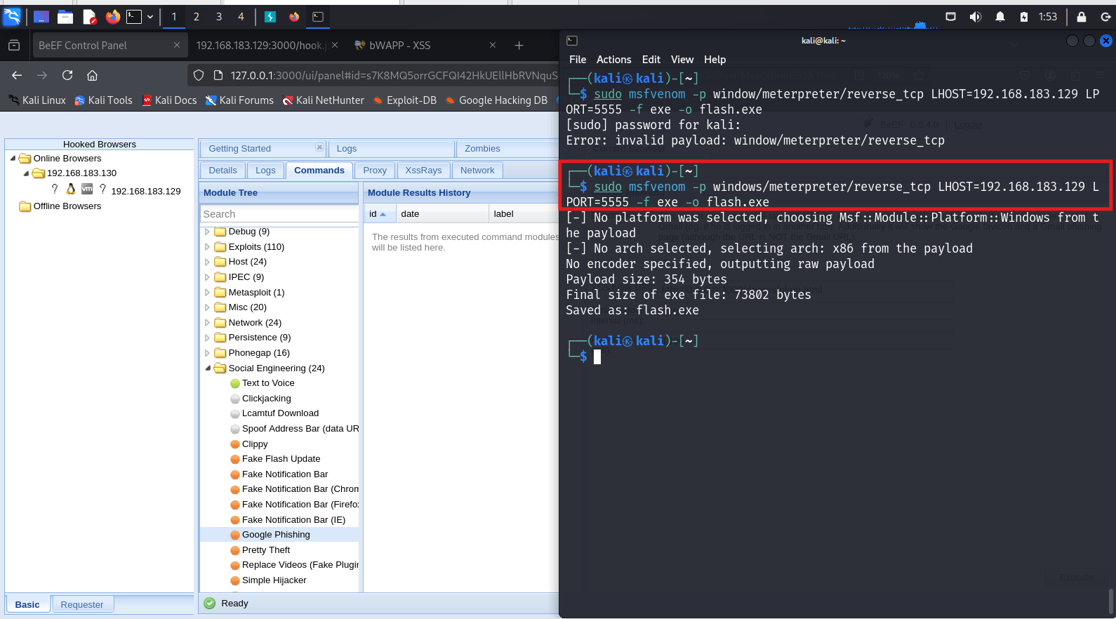 - BeEF에 클라이언트 브라우저가 연결되었을 때, Flash Update 모듈을 사용한다.