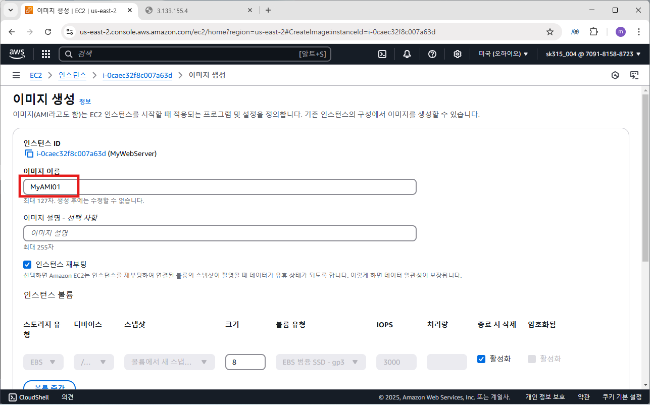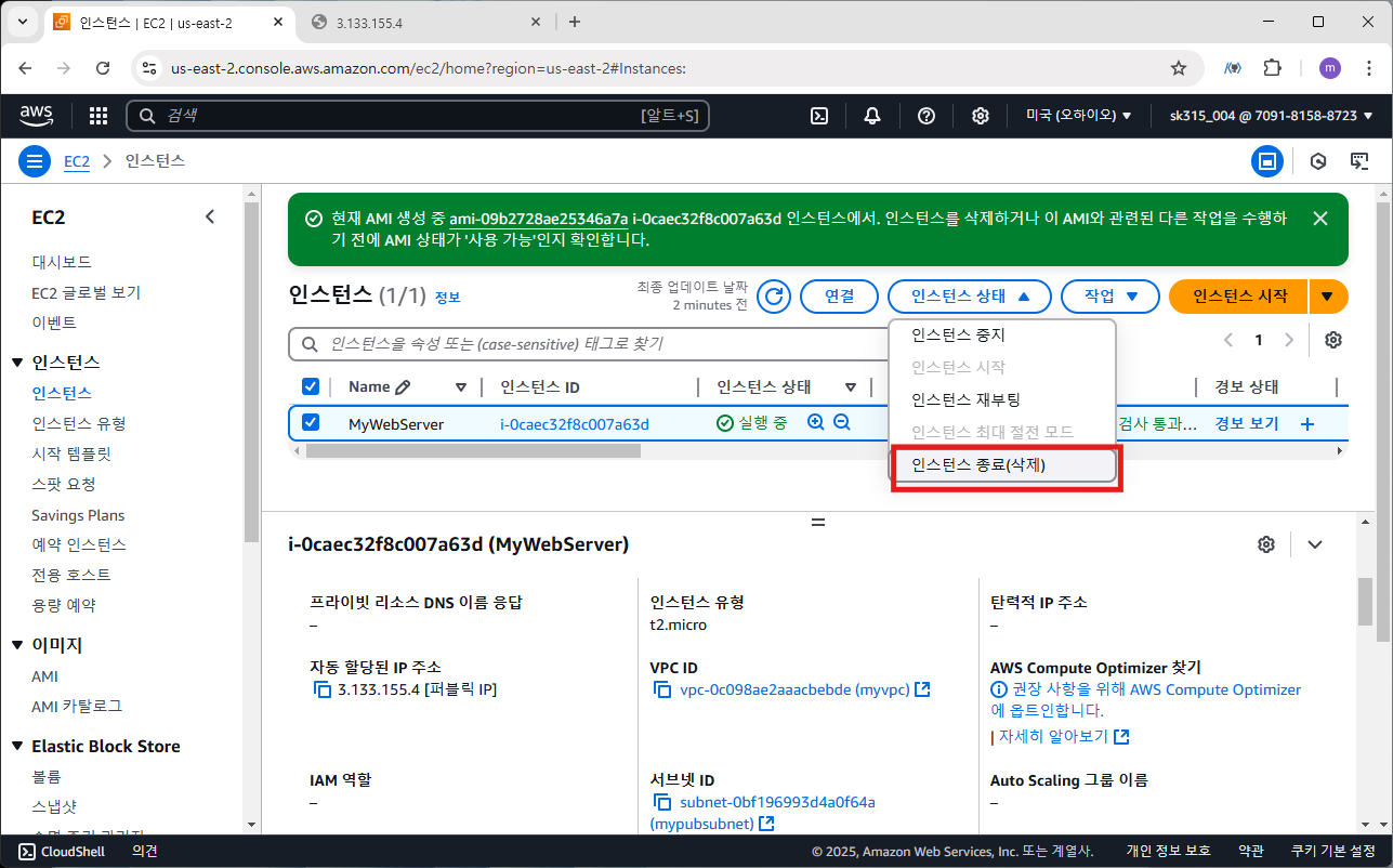 AMI를 생성한 후 EC2 인스턴스 종료 및 삭제