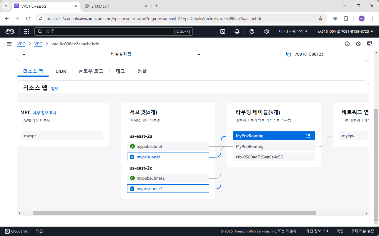 현재 VPC 네트워크는 이전에 설정한 네트워크 구성과 동일하며, 다음과 같이 퍼블릭 서브넷과 프라이빗 서브넷으로 구성되어 있다.