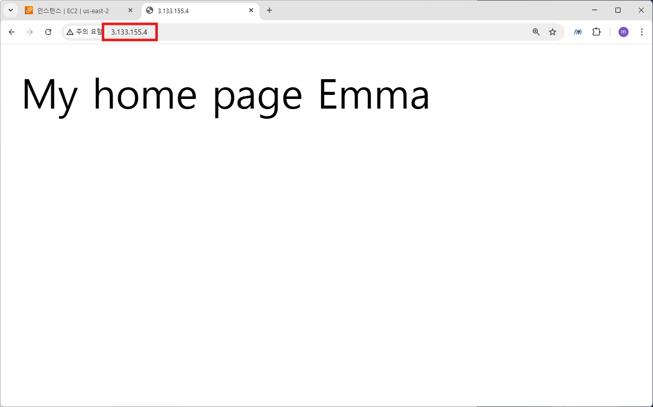 웹 브라우저에서 http://<퍼블릭 IPv4> 입력 후 접속