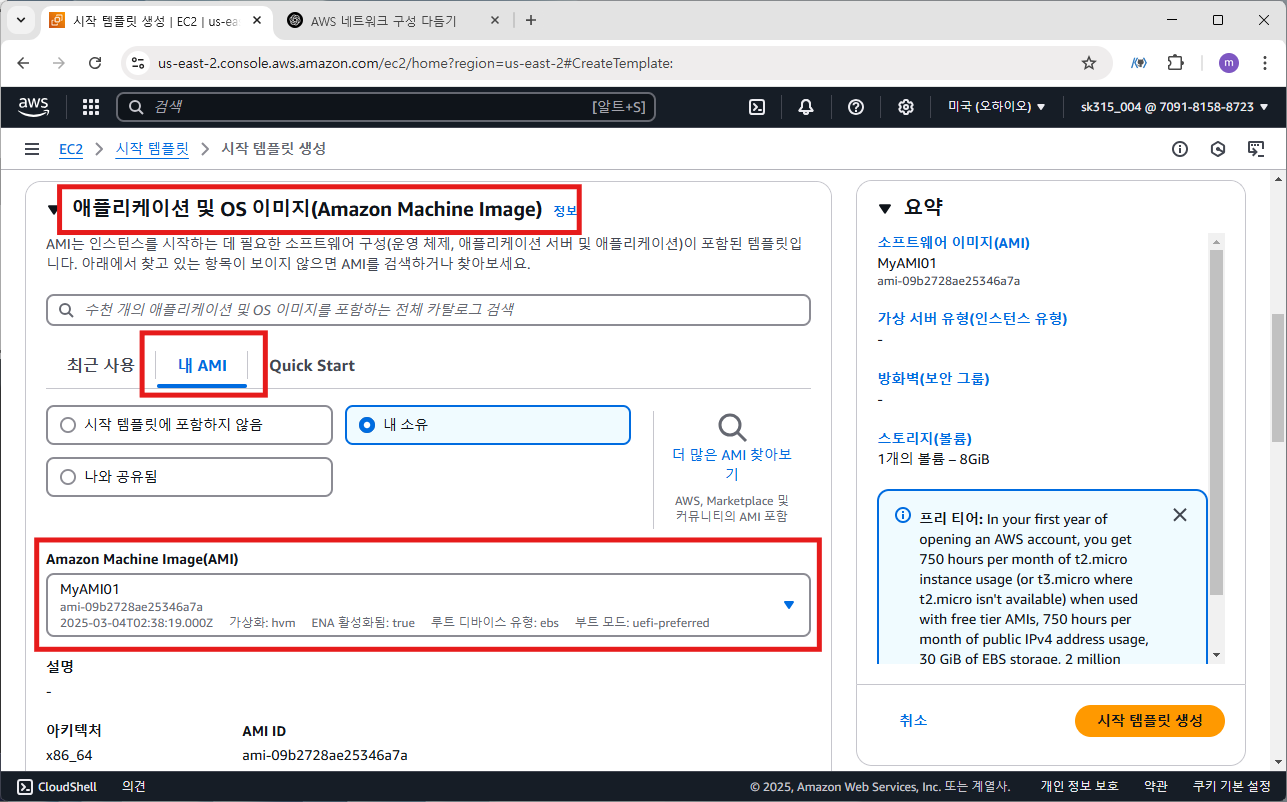 AMI는 이전 게시글에서 만든 AMI인 MyAMI01로 선택합니다.