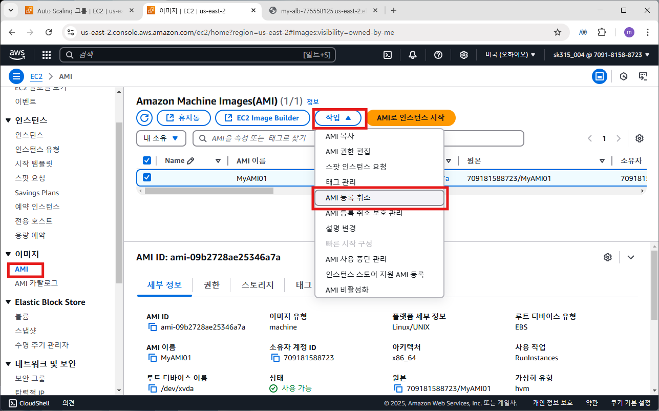 EC2 > AMI에서 MyAMI01 삭제