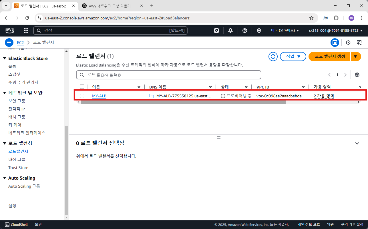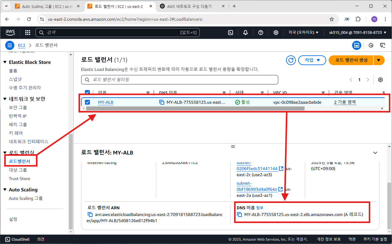 MY-ALB가 생성된 것을 확인할 수 있습니다.