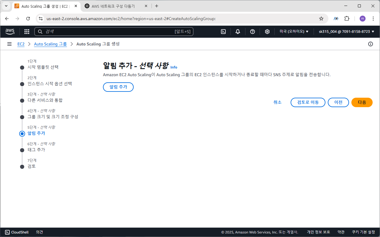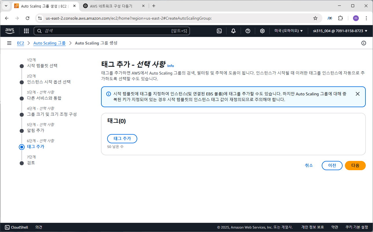 6단계 태그 추가도 스킵하고 오토 스케일링 그룹을 생성한다.