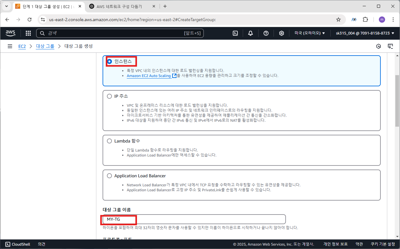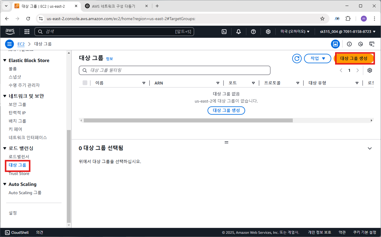 이제 대상 그룹을 생성하겠습니다.