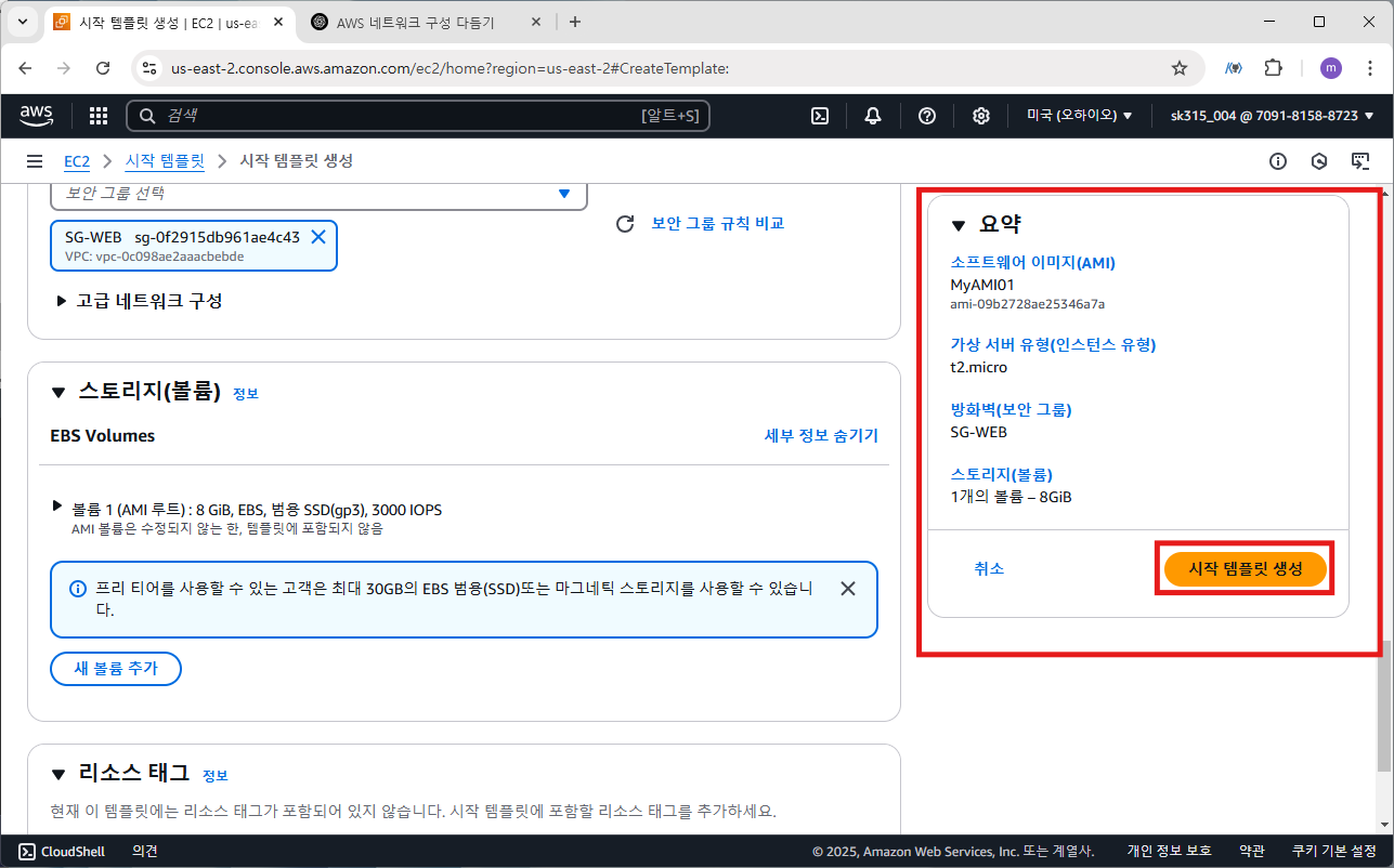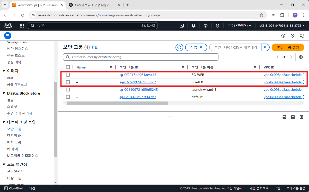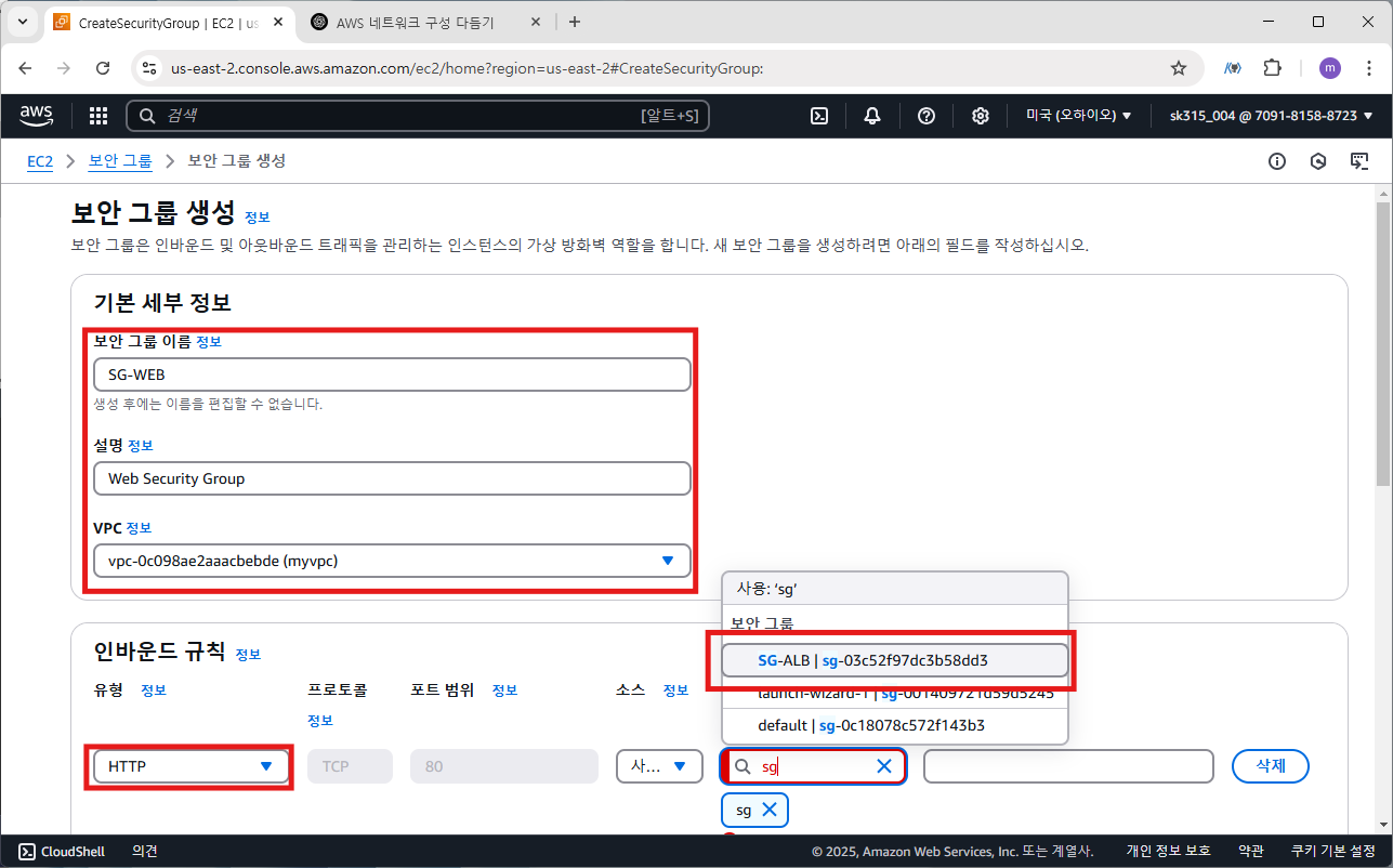 보안 그룹은 SG-WEB으로 선택합니다.