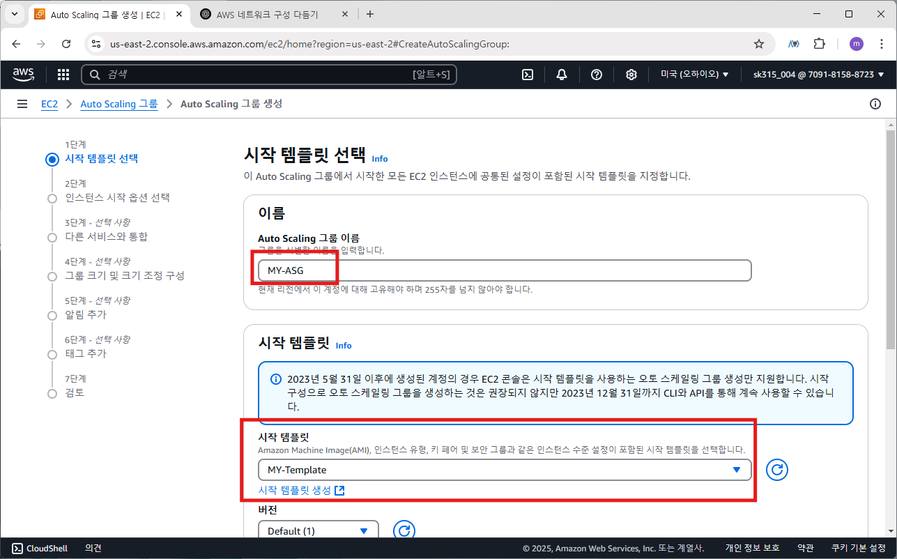 오토 스케일링 그룹>오토 스케일링 그룹 생성
