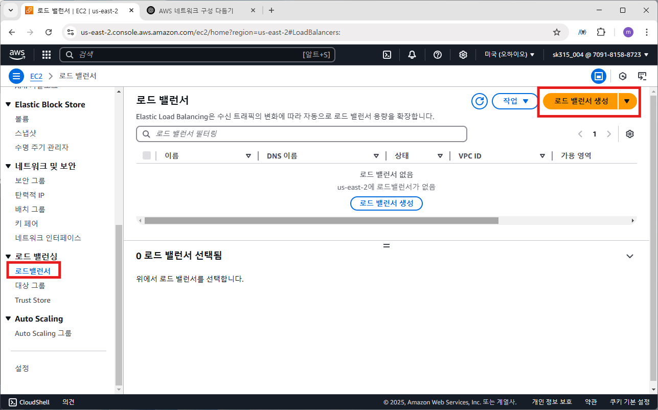 로드밸런서>로드 밸런서 생성