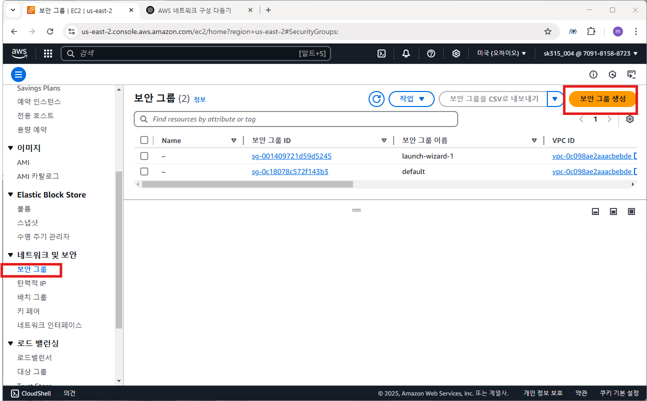1. 보안 그룹 생성