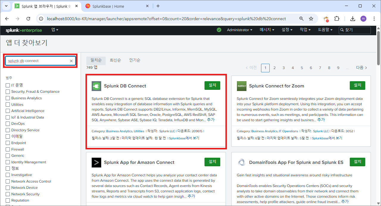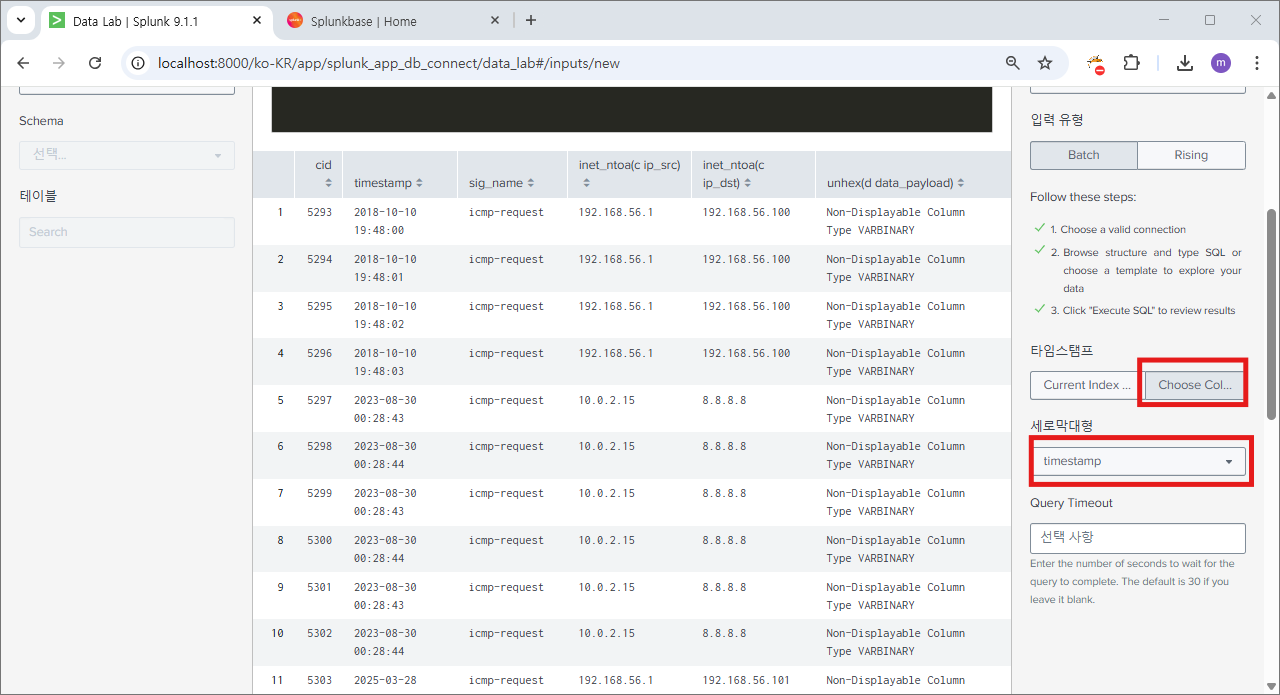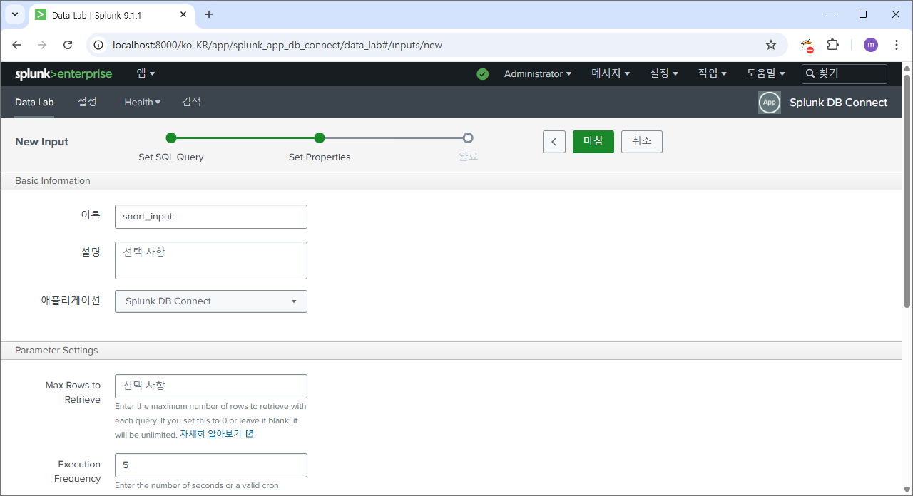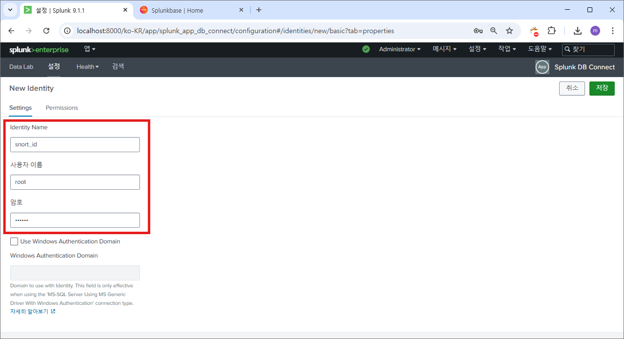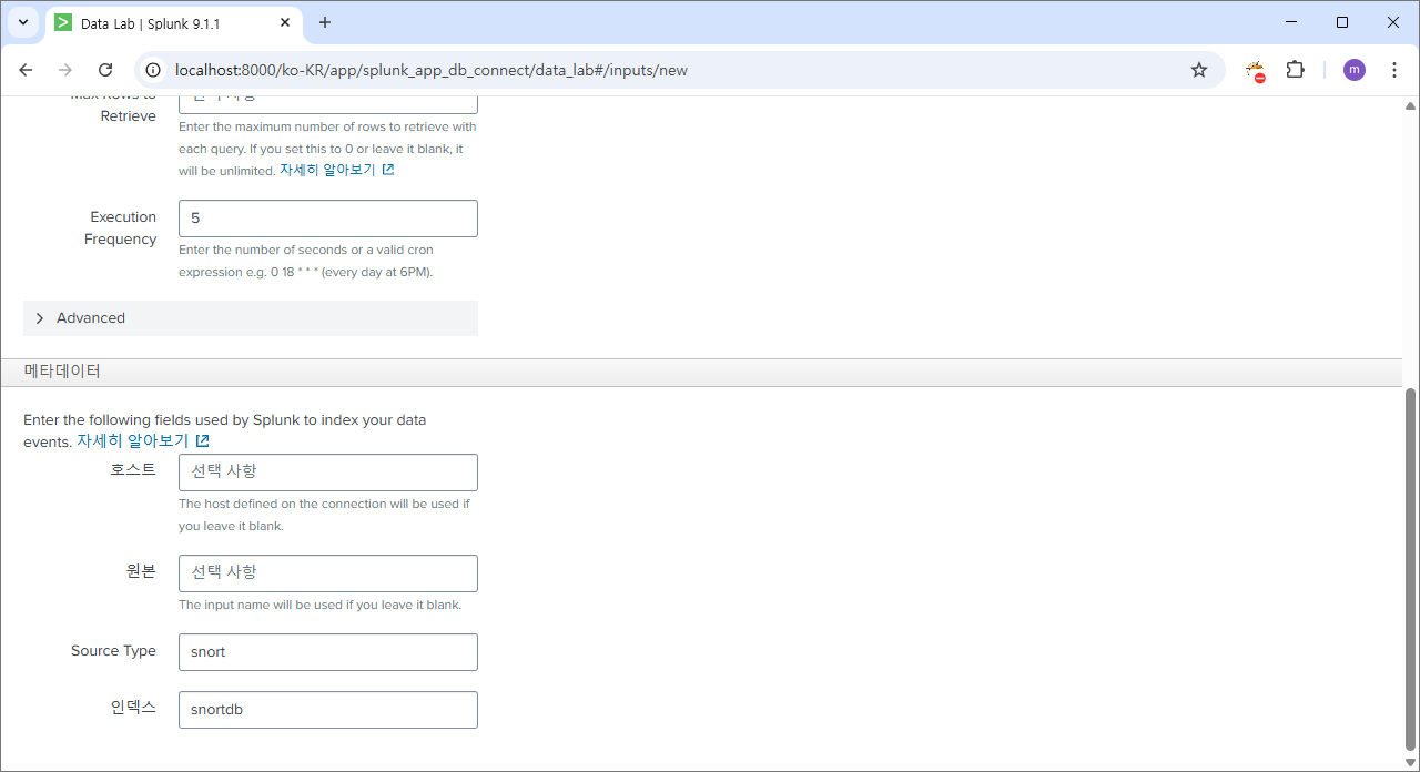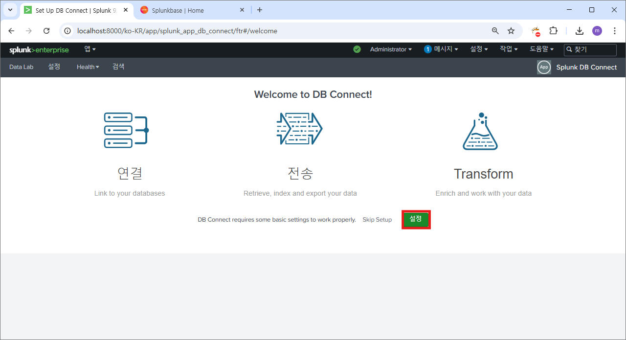 재시작 후에 다시 splunk db connect로 이동하면?
