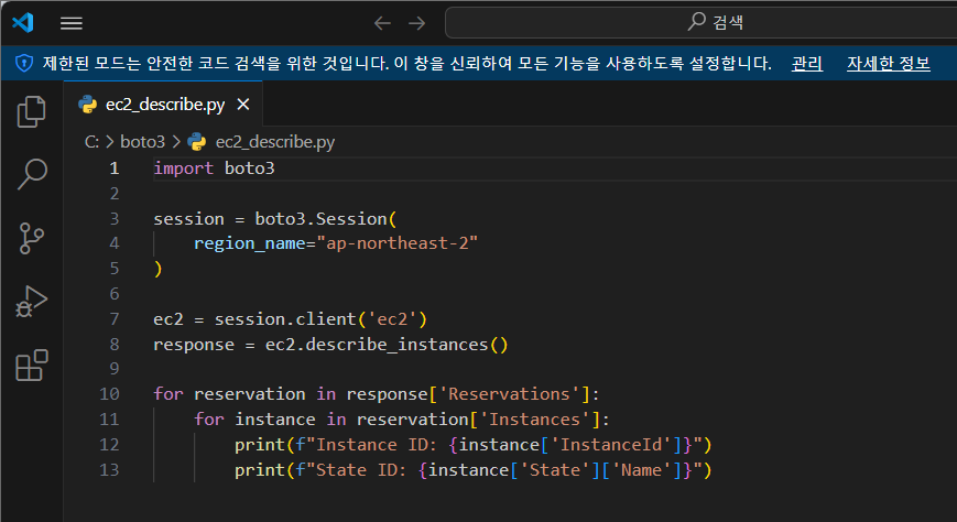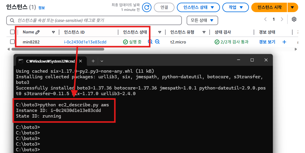 액세스키를 이용해서 ec2 자원의 정보를 조회가능함.