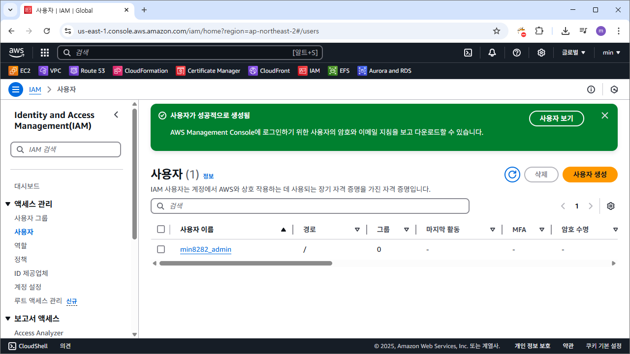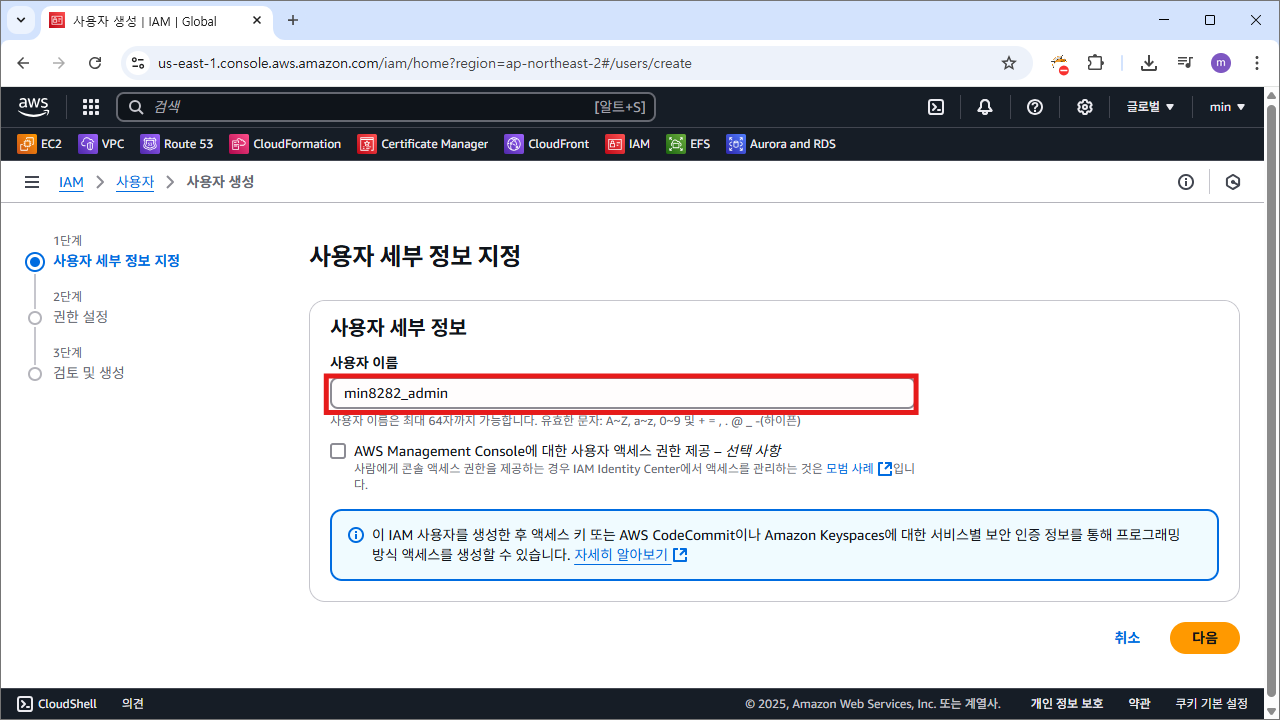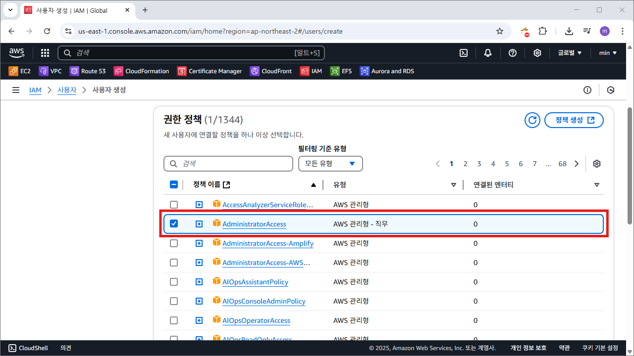 AdministratorAccess 선택 후 다음 넘어가서 사용자 생성
