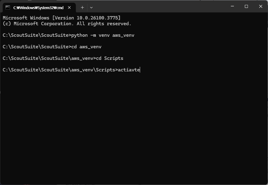 C:\ScoutSuite\ScoutSuite\aws_venv\Scripts>actiavte