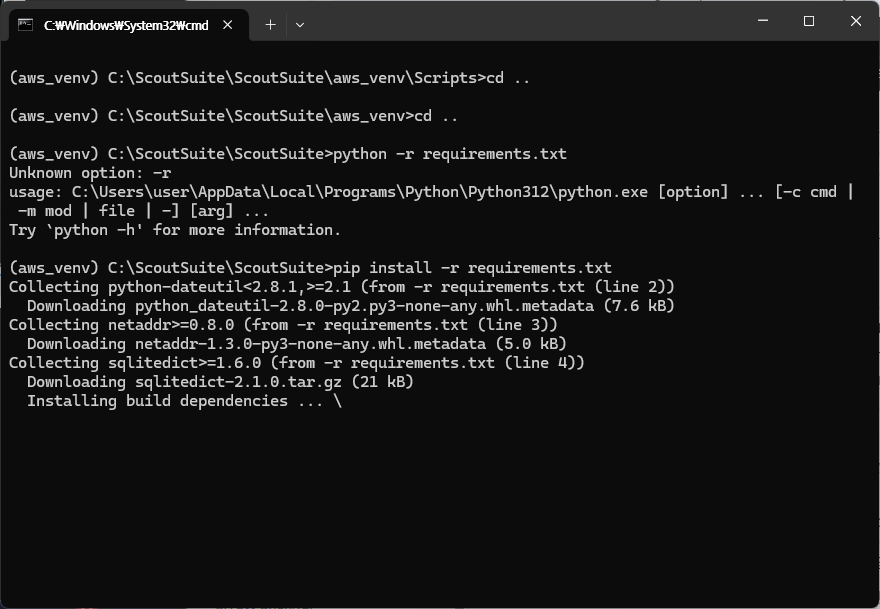C:\ScoutSuite\ScoutSuite>python -m venv aws_venv