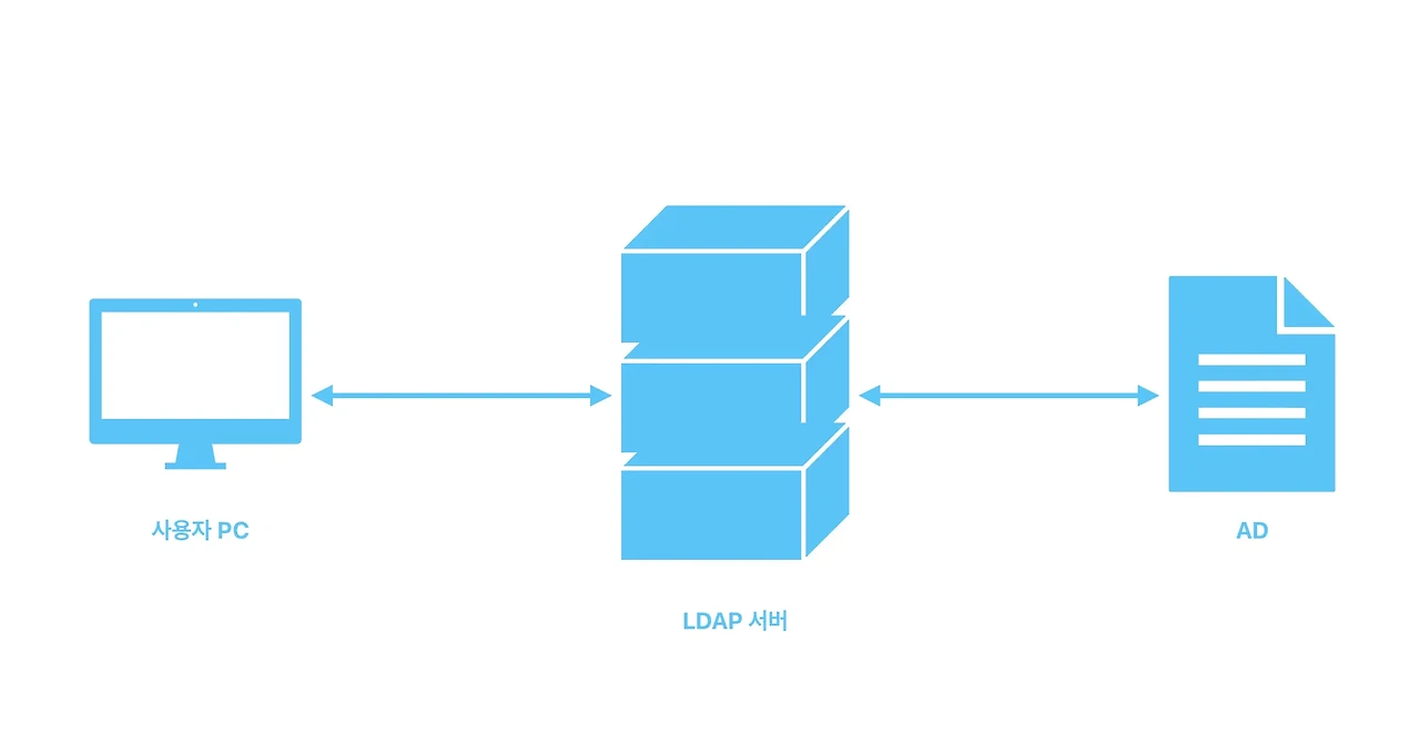- 사용자 로그인 (인증 요청) : 사용자가 회사 컴퓨터에 로그인하면, AD에 있는 KDC(Key Distribution Center)라는 서비스에 인증을 요청합니다.