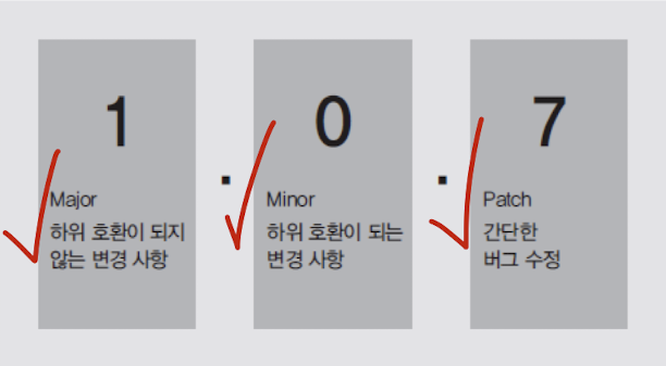 - Major(주 버전): 하위 버전과 호환되지 않는 수정 사항이 생겼을 때 올림