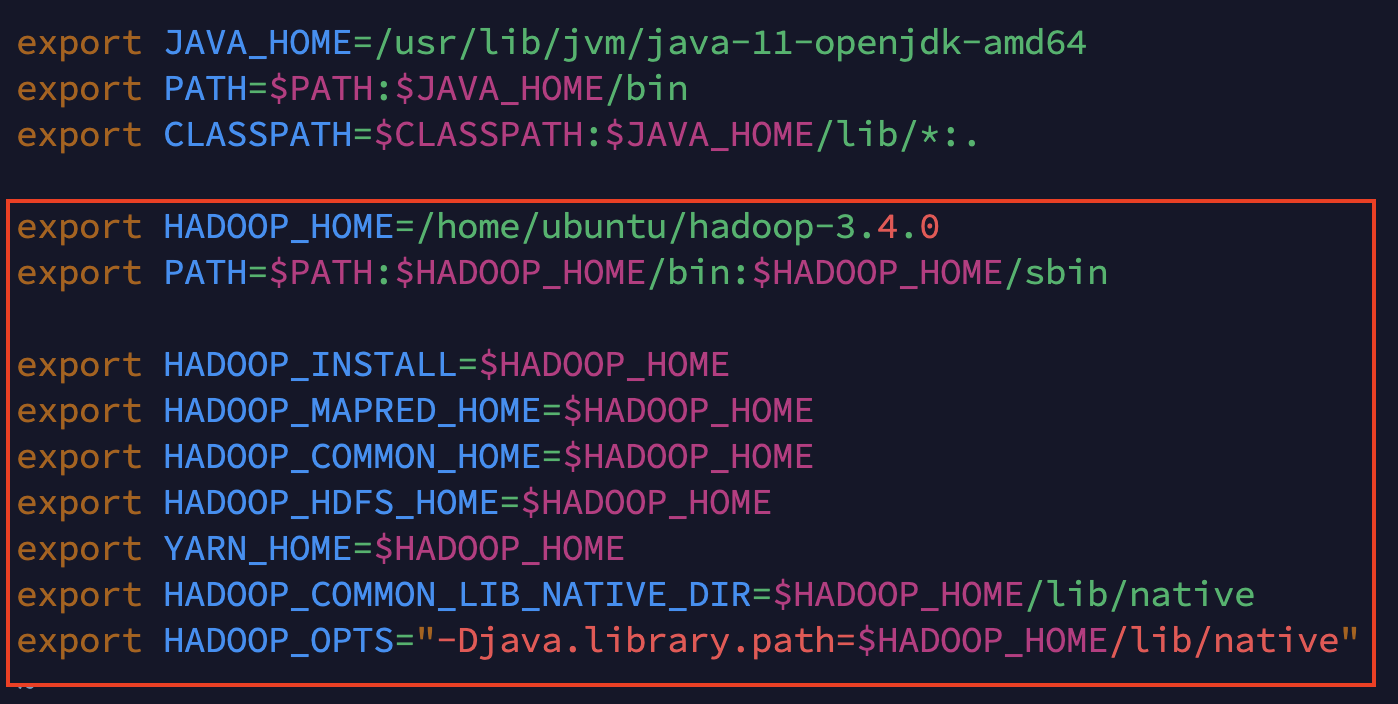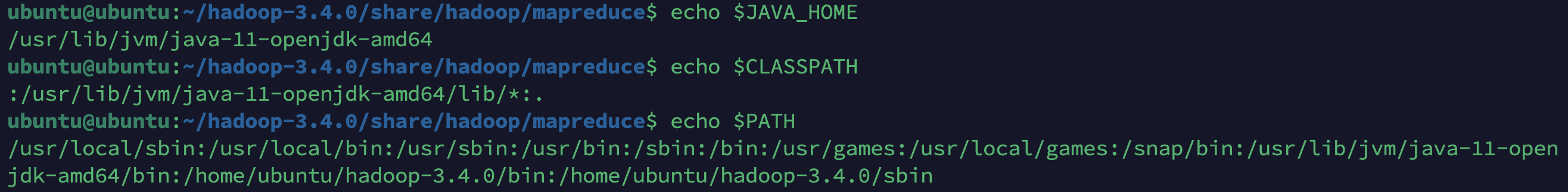 export HADOOP_HOME=/home/ubuntu/hadoop-3.4.0
