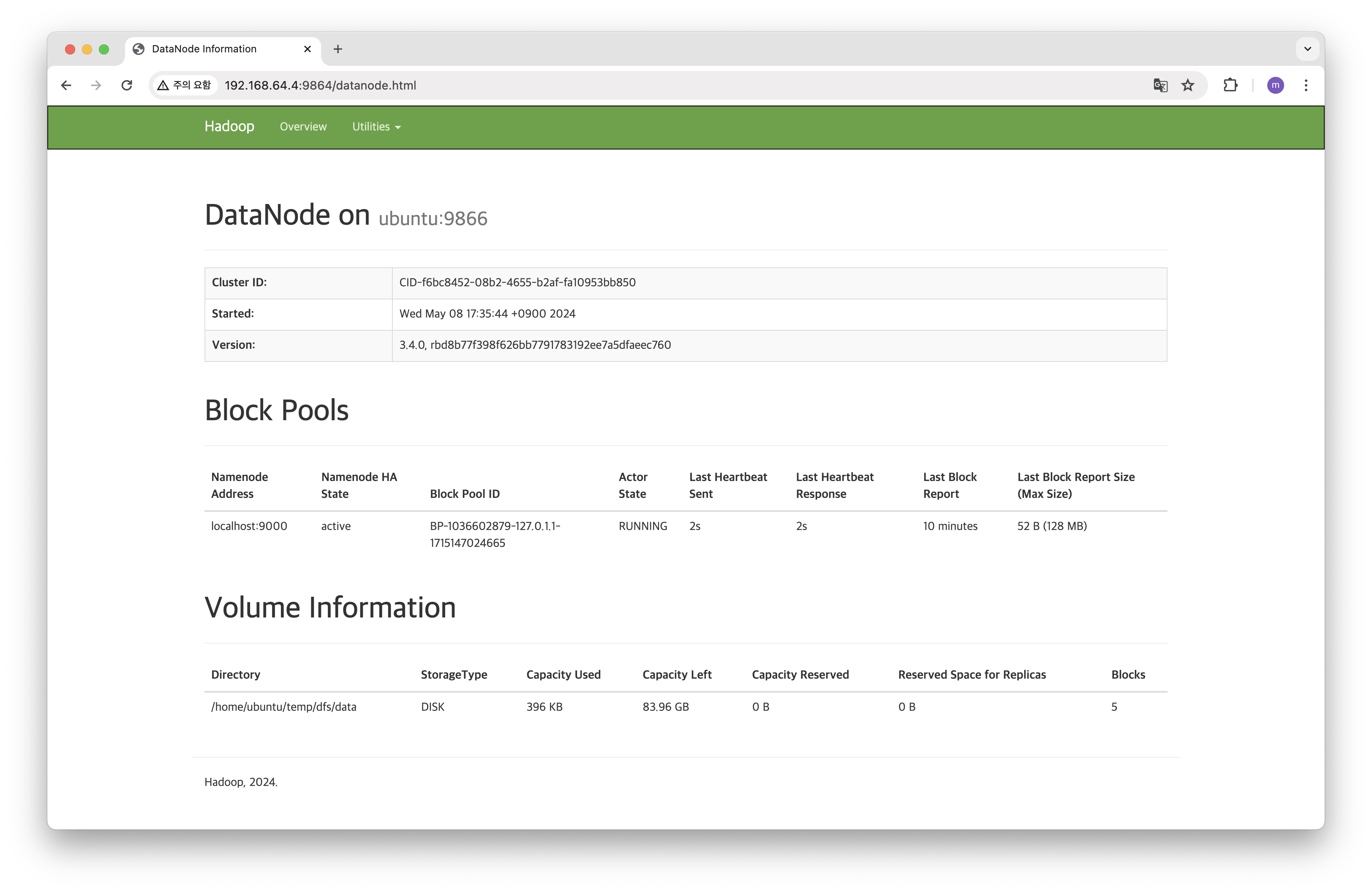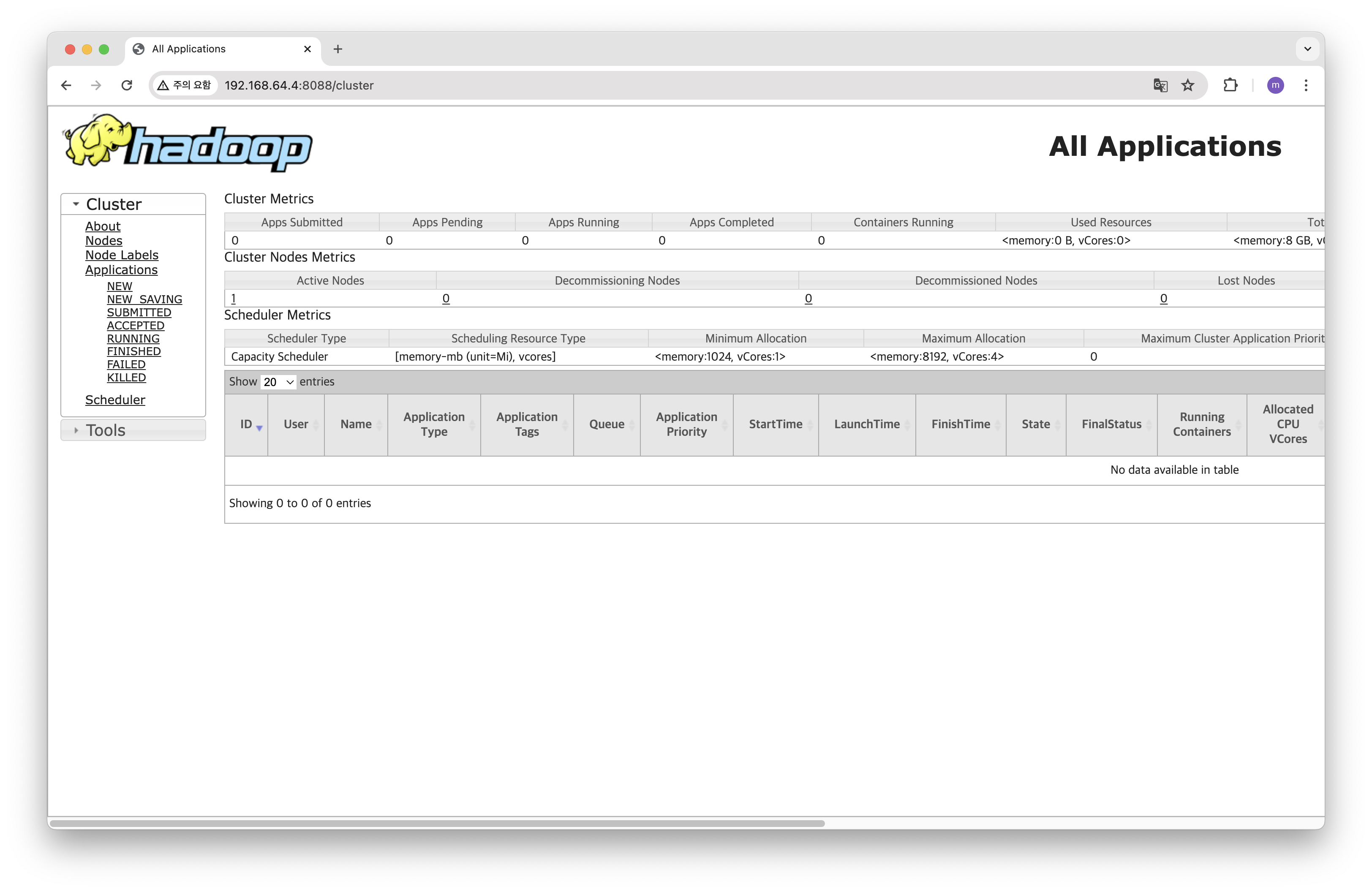 나는 가상 머신에 DHCP로 인터넷을 연결했기 때문에 localhost:8088 말고 192.168.64.4:8088 접속했다. putty 등으로 우분투 서버를 연결했거나 로컬에서 진행하면 localhost로 접속하길 바란다.