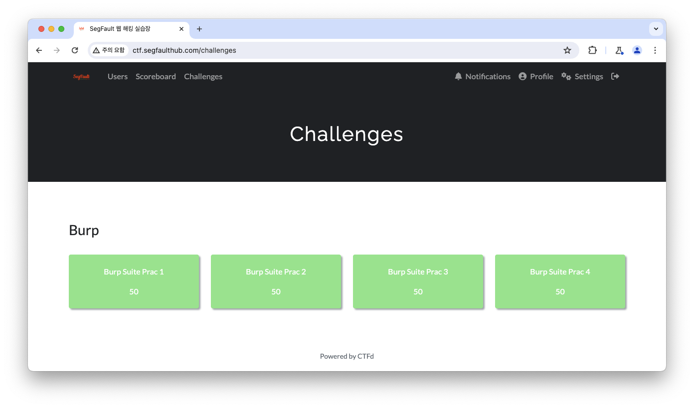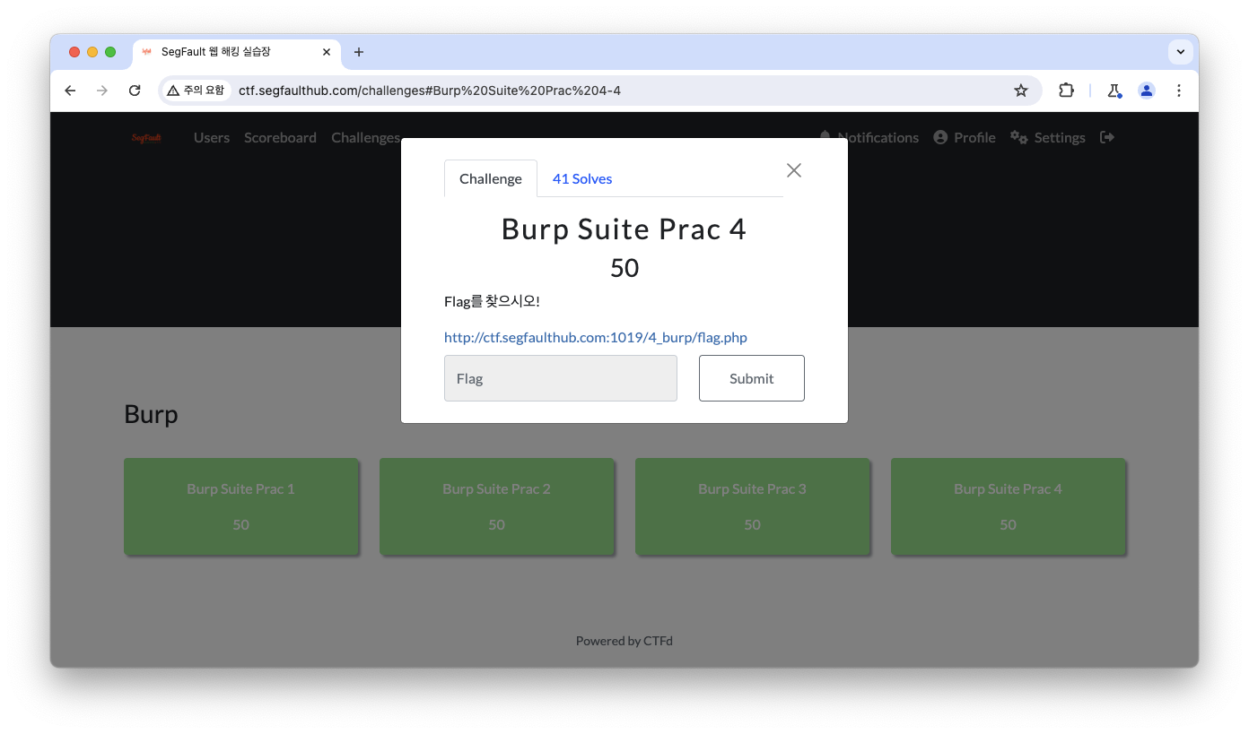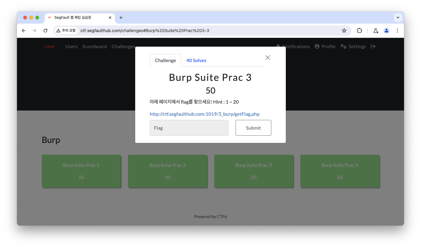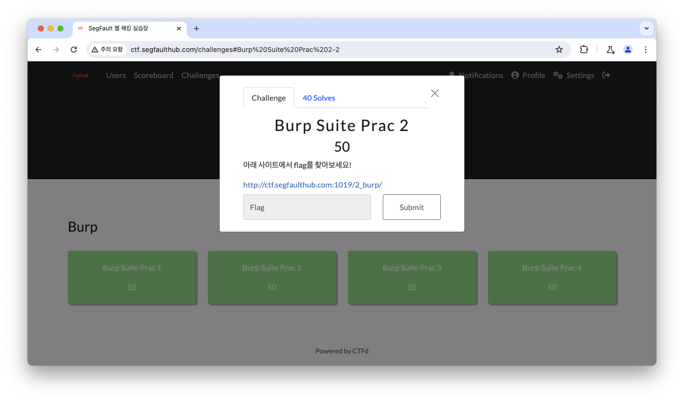 위 기능들을 사용한 간단한 Burp Suite - CTF 문제다.