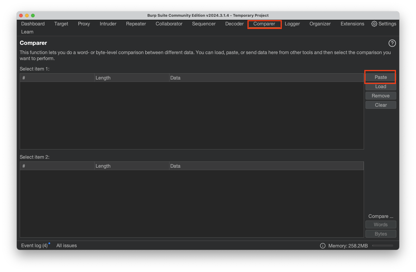 comparer로 이동하고 Paste(붙여넣기)를 클릭하면