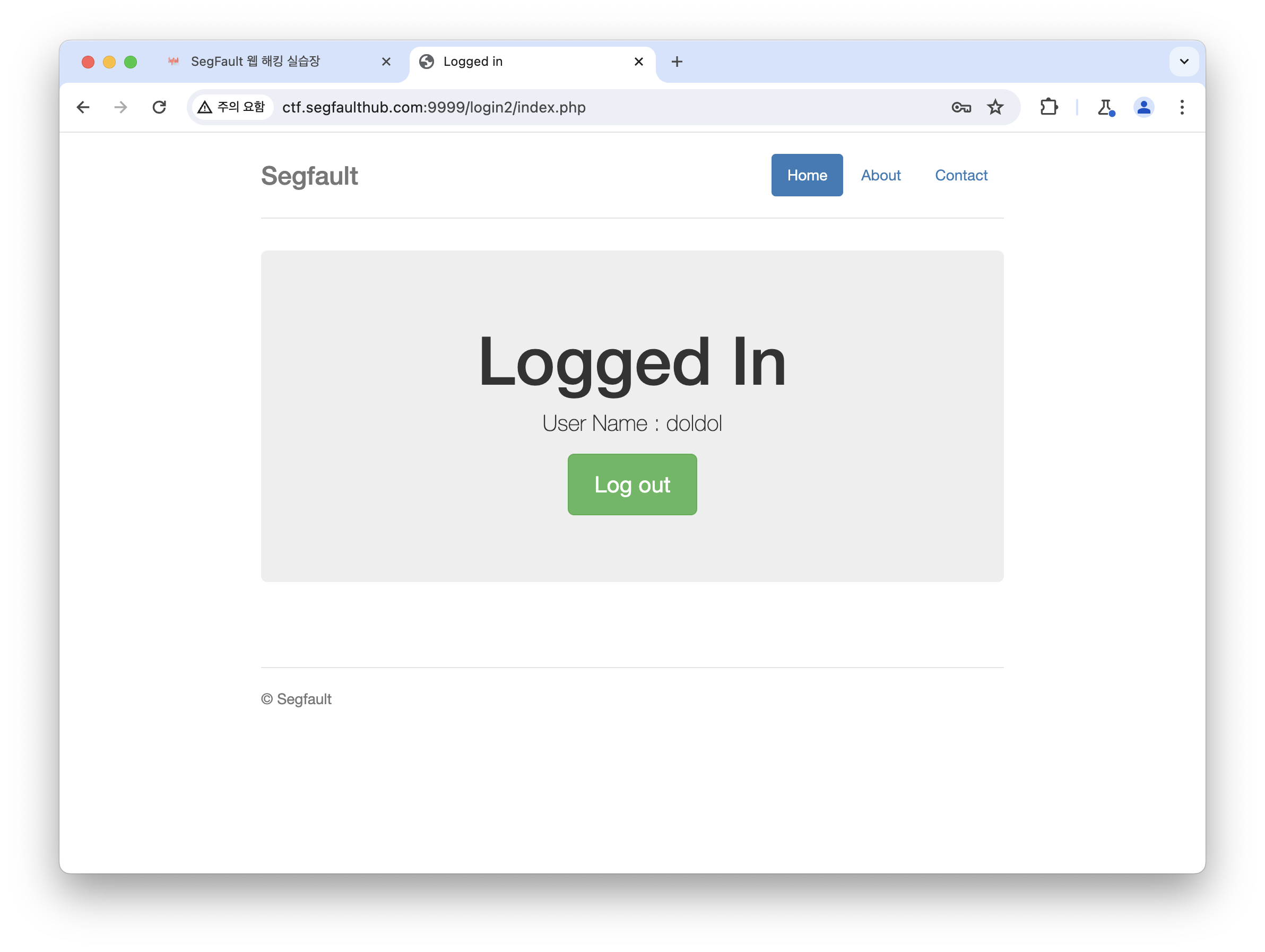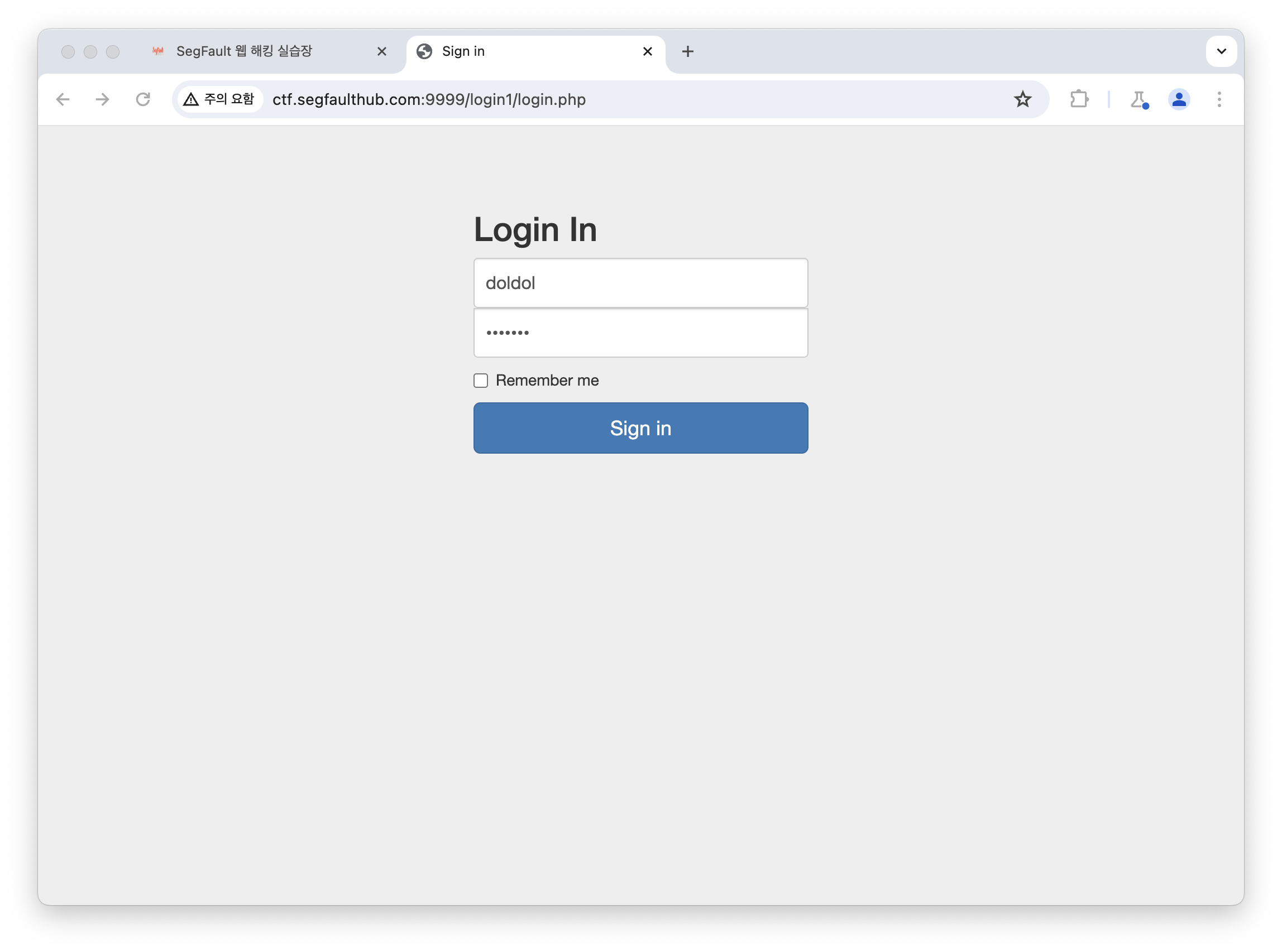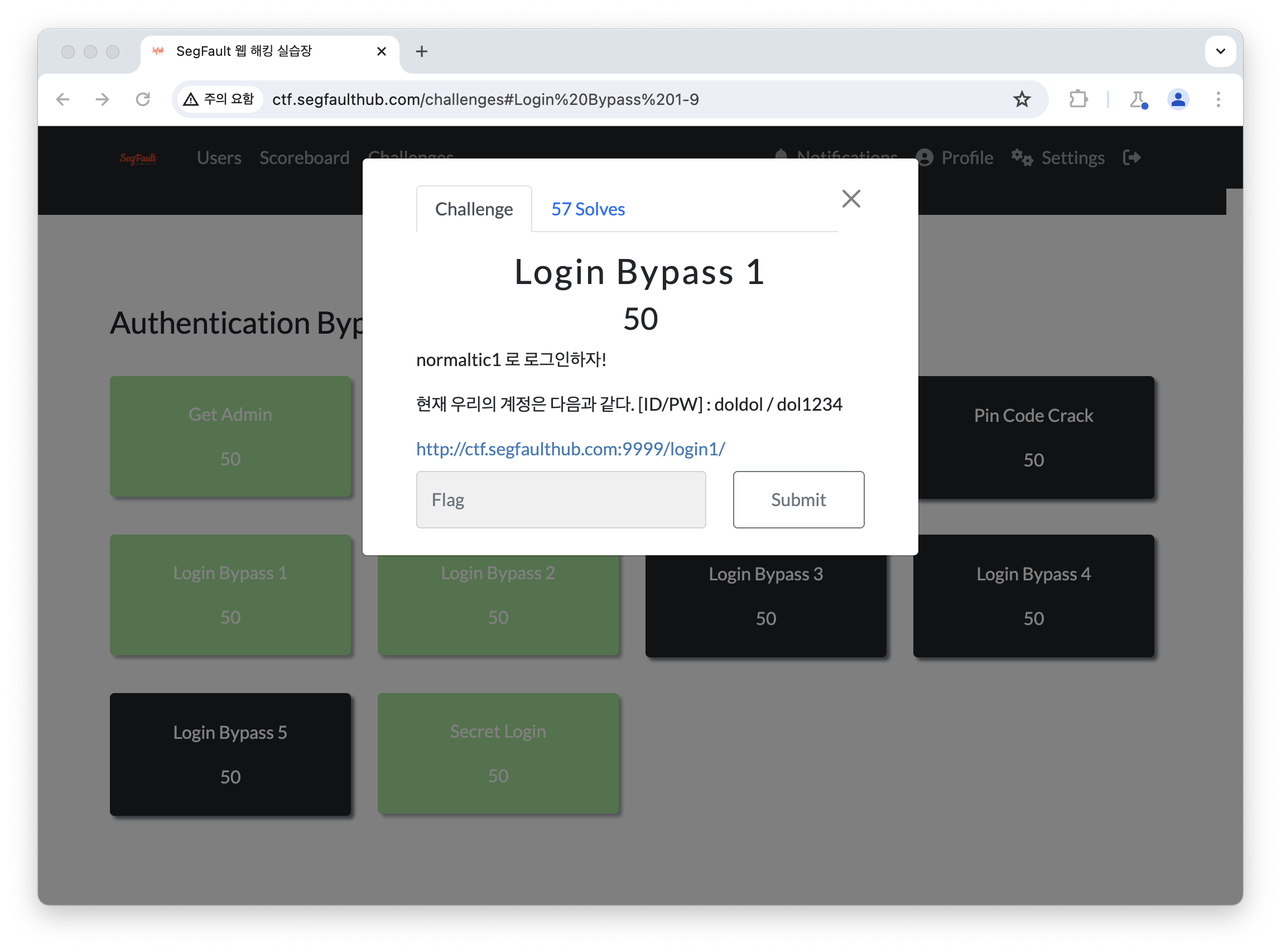 실제 위처럼 로그인을 시도해 보면 doldol 사용자로 로그인이 성공했다. 이번 문제에는 로그인 로직이 식별과 인증이 동시에 적용되는 경우인 것으로 예측할 수 있다.