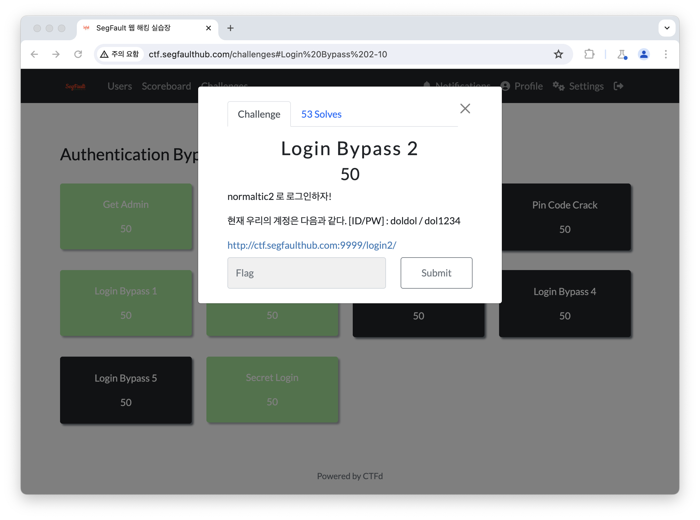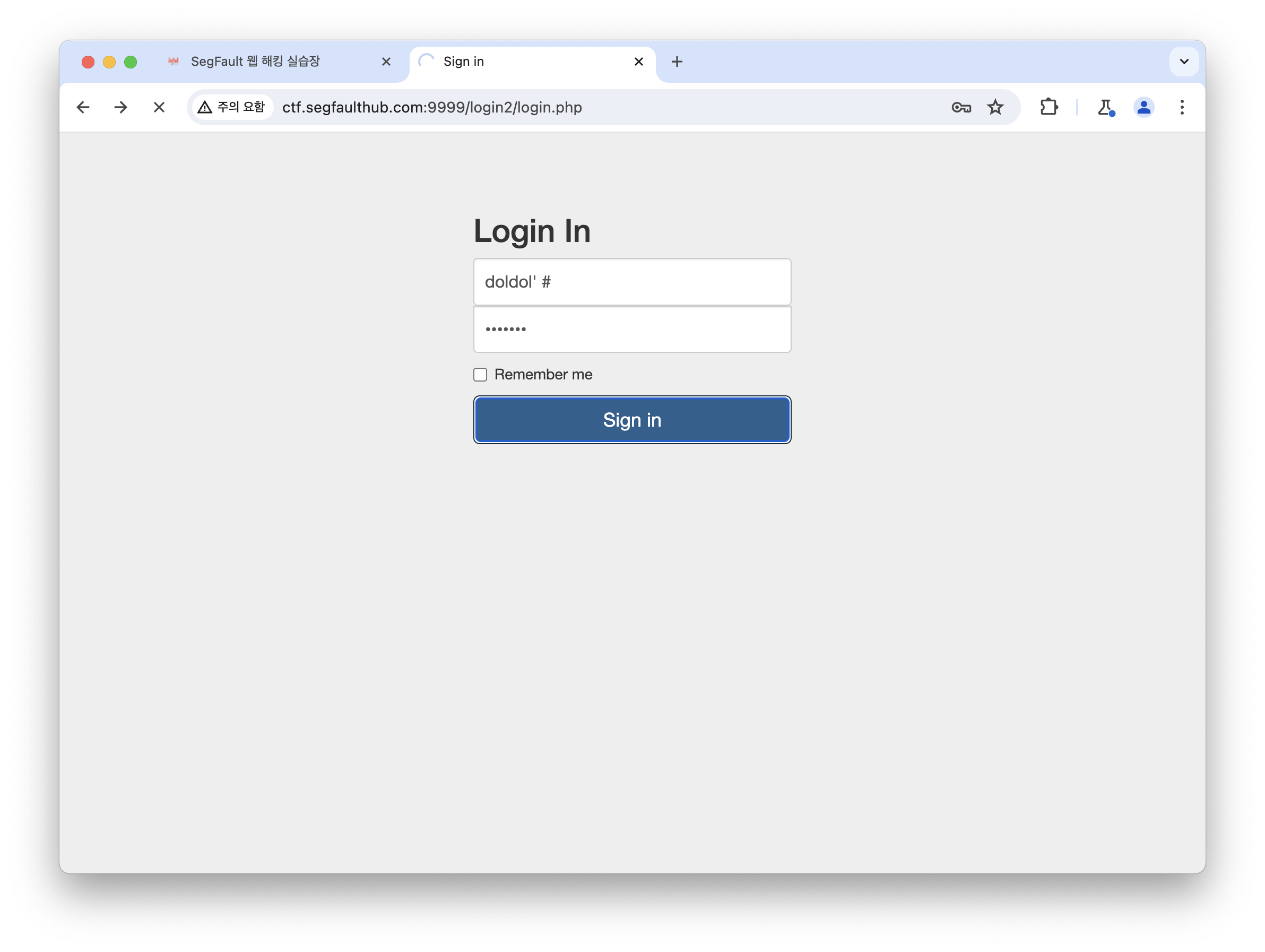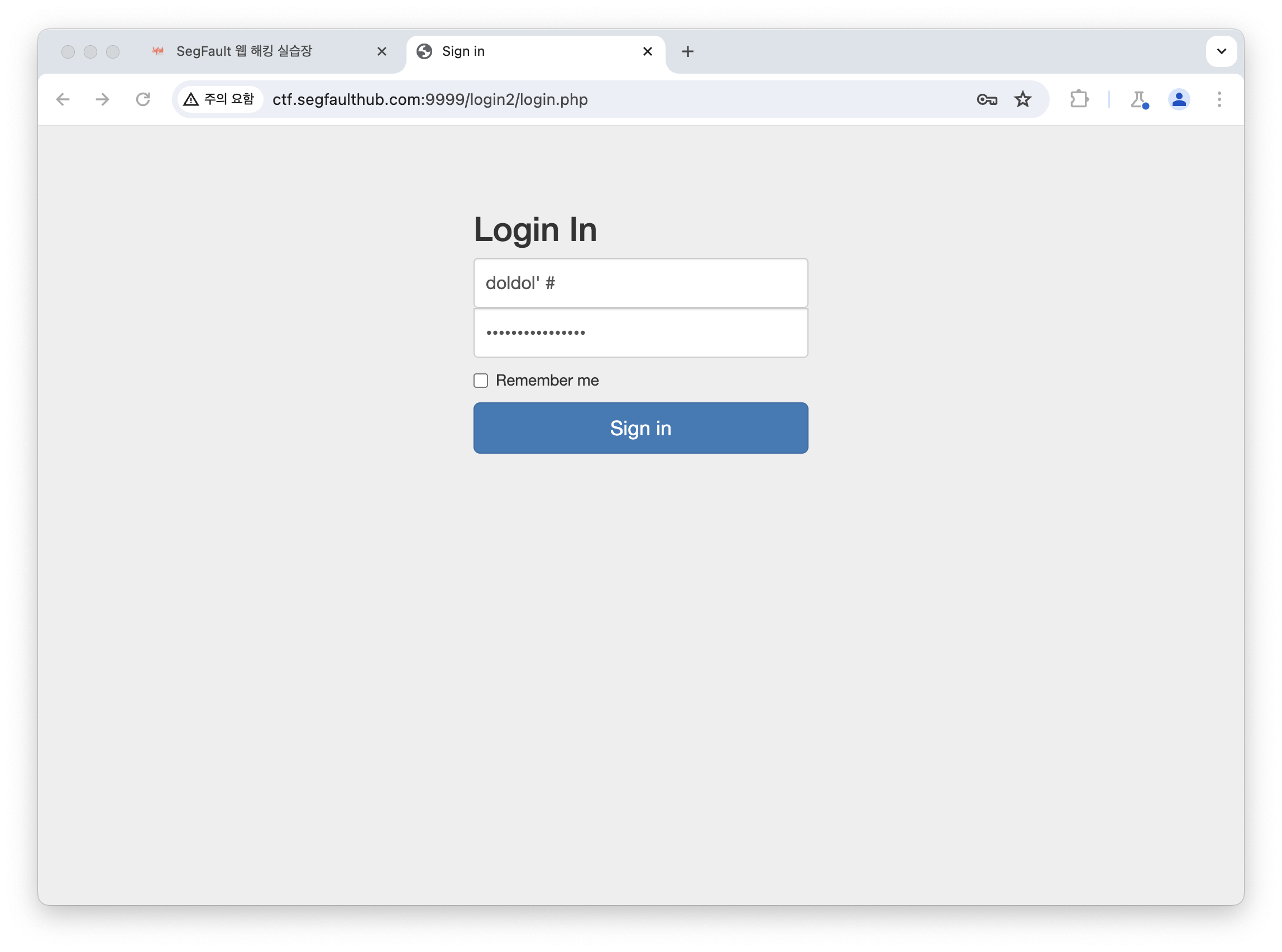 실제 위처럼 로그인을 시도해 보면 doldol 사용자로 로그인이 성공했다. 이번 문제에는 로그인 로직이 식별과 인증이 동시에 적용되는 경우인 것으로 예측할 수 있다.