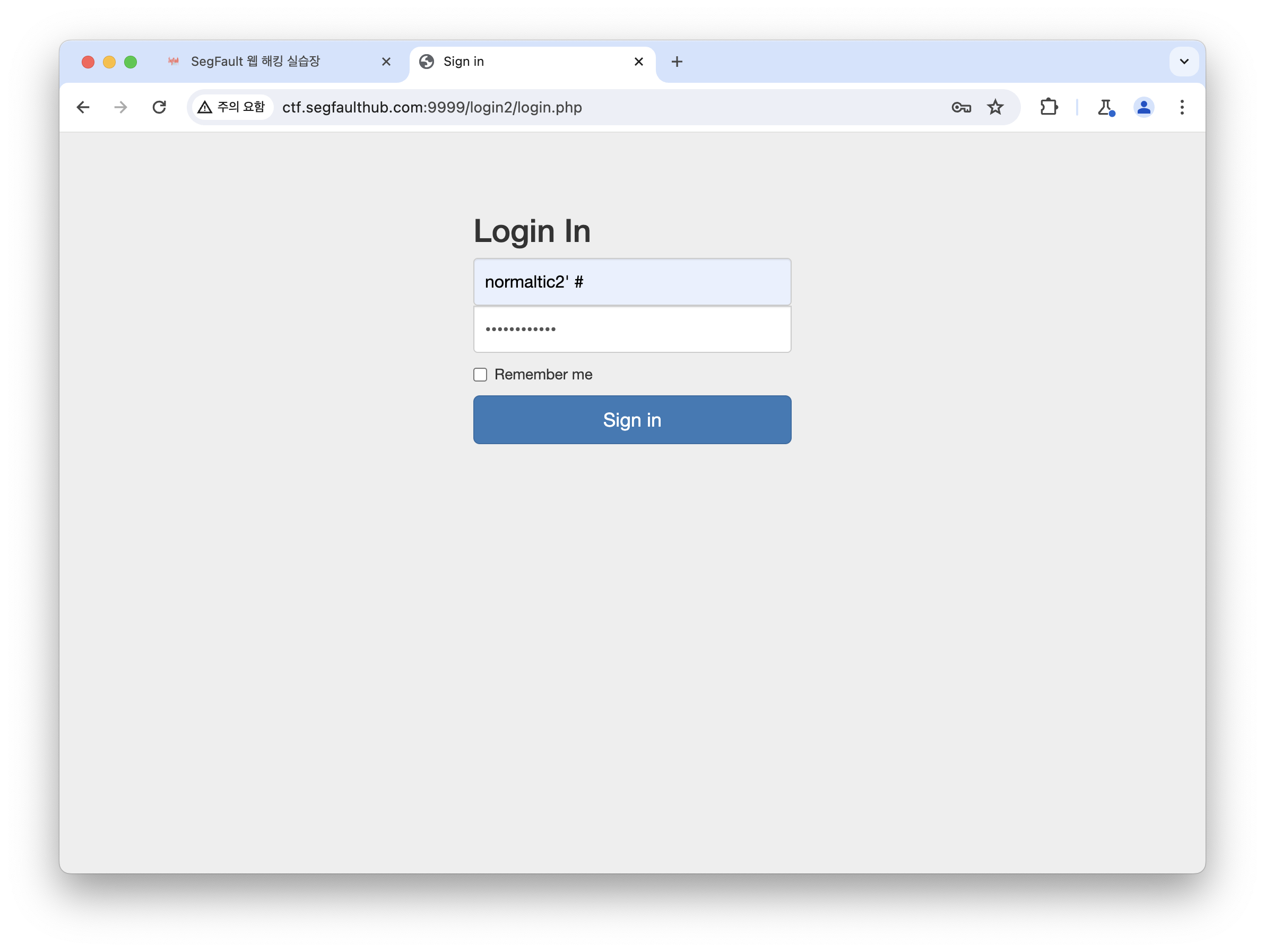 아이디에 normaltic1' #, 비밀번호는 어차피 주석처리되니까 아무거나 입력하고 로그인을 시도하면?