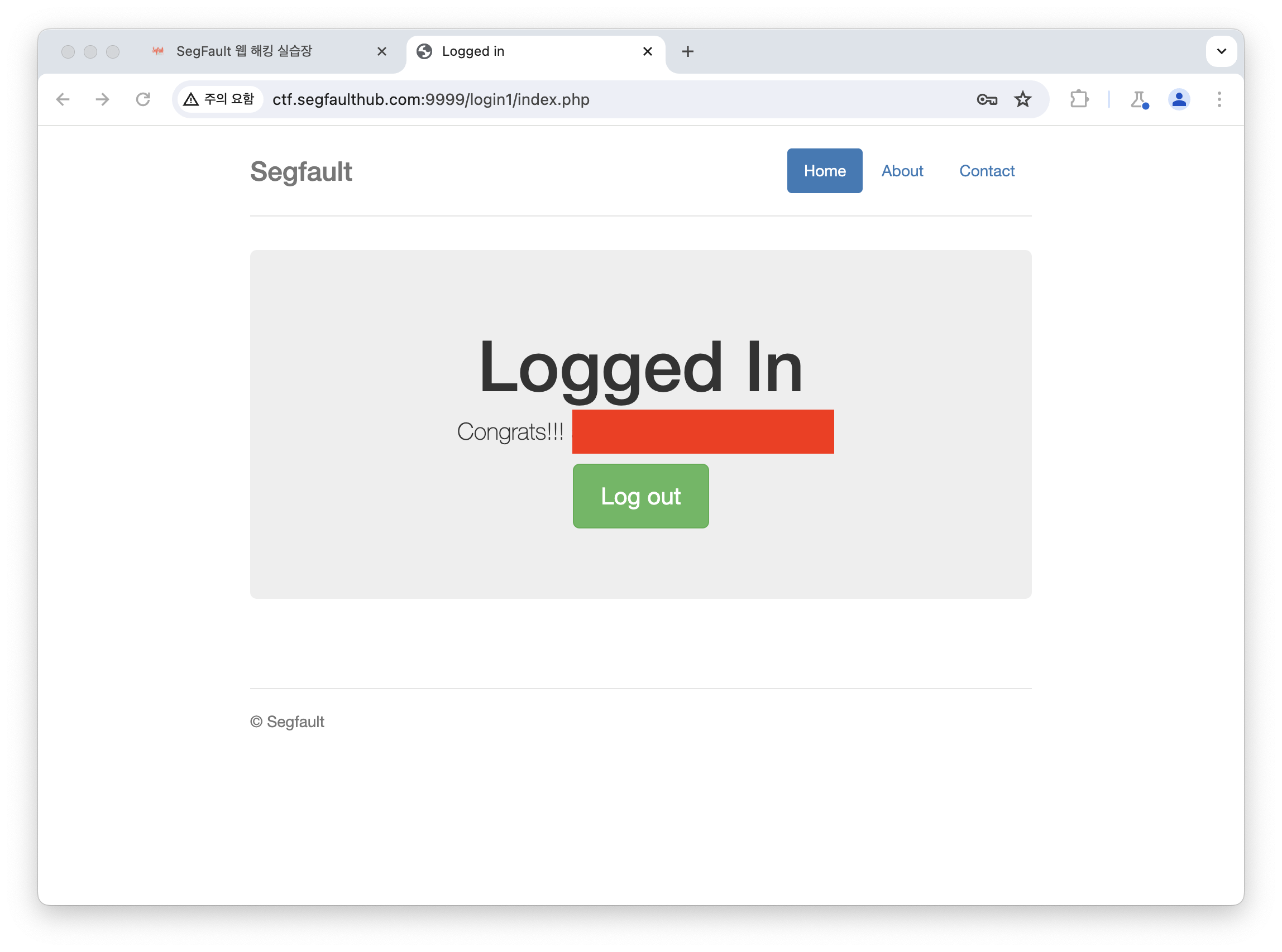 로그인 페이지에서 문제에서 알려준 아이디와 비밀번호로 로그인을 시도