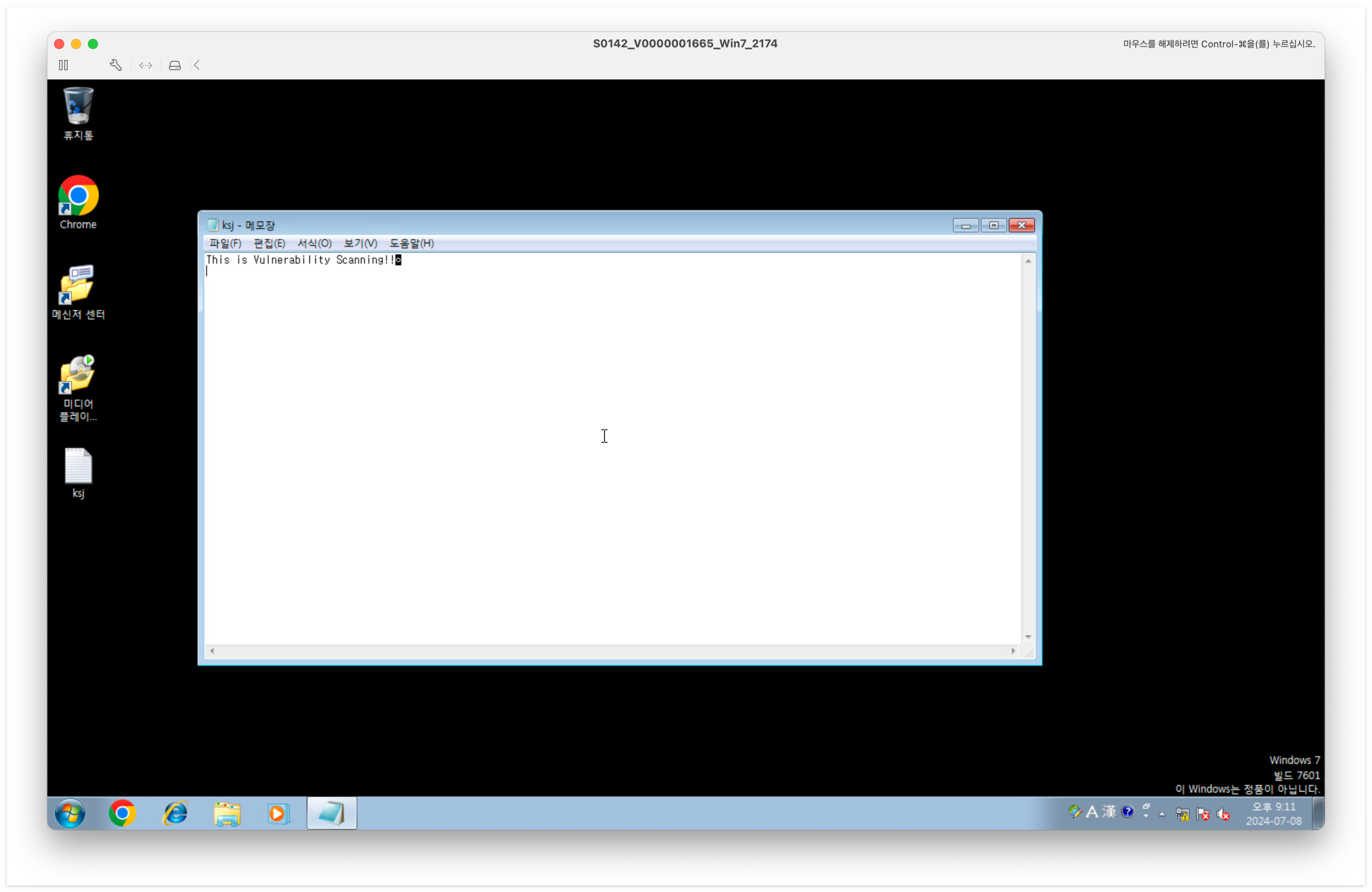현재 Window PC 바탕화면에 ksj.txt라는 파일을 하나 만들었습니다. 칼리 리눅스 환경에서 이 파일을 수정해 보겠습니다.