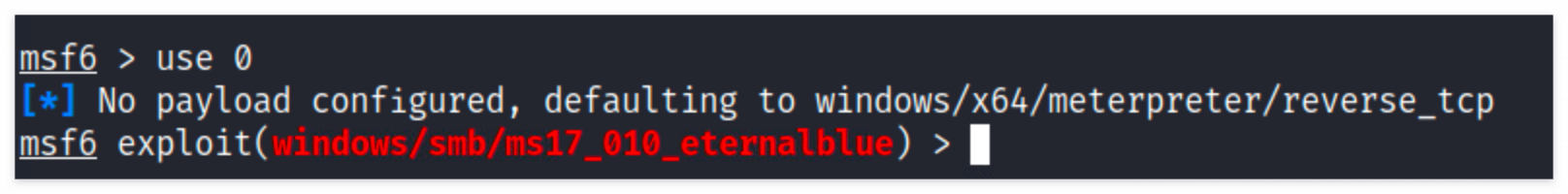 // use 0 은 가장 먼저 나온 취약점을 사용하겠다. = eternalblue 취약점