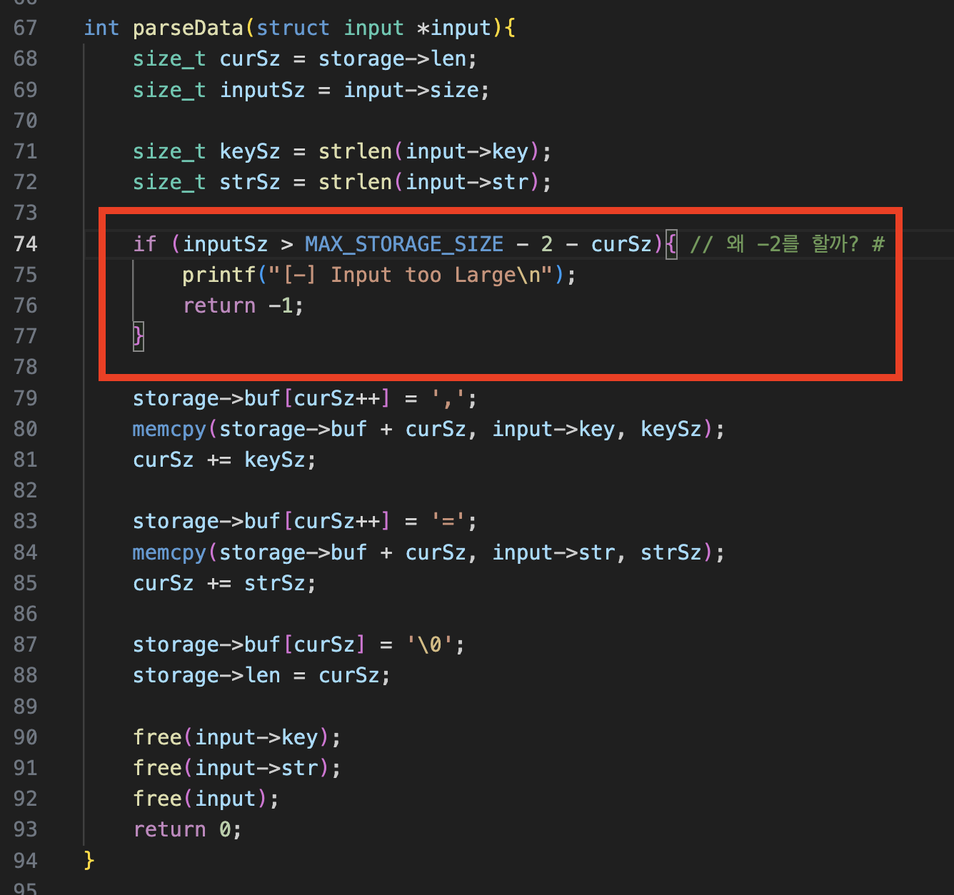62 -63 = -1인데 integer overflow는 표현할 수 있는 가장 낮은 값은 0임. 이렇게 되면 가장 큰 자료형이 나옴. 0xFFFFFFFF요게 나옴. 그래서 이 검사가 제대로 동작하지 않는 것임. -1 이든. -2든 maxSize가 가장 큰 값인 0xFFFFFFFF가 되는 것임.