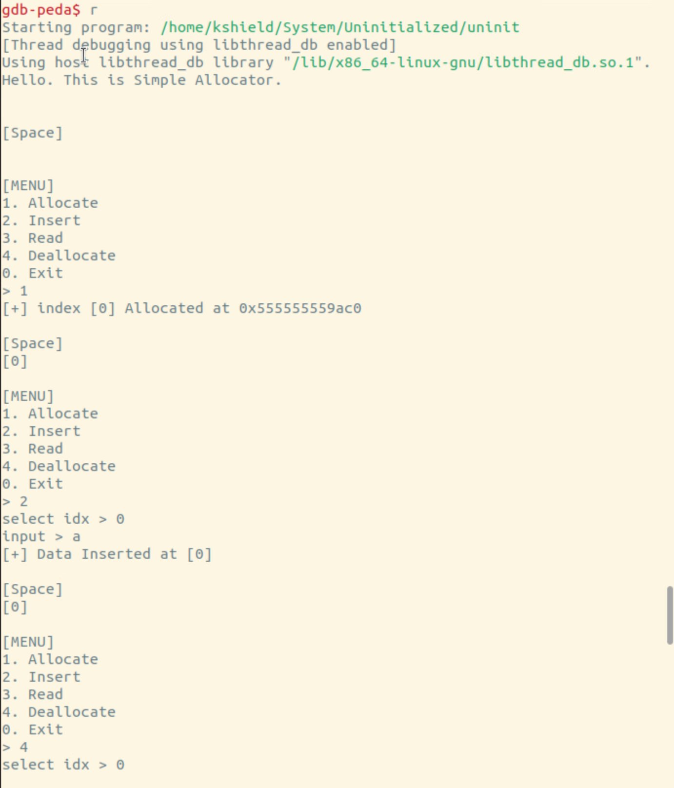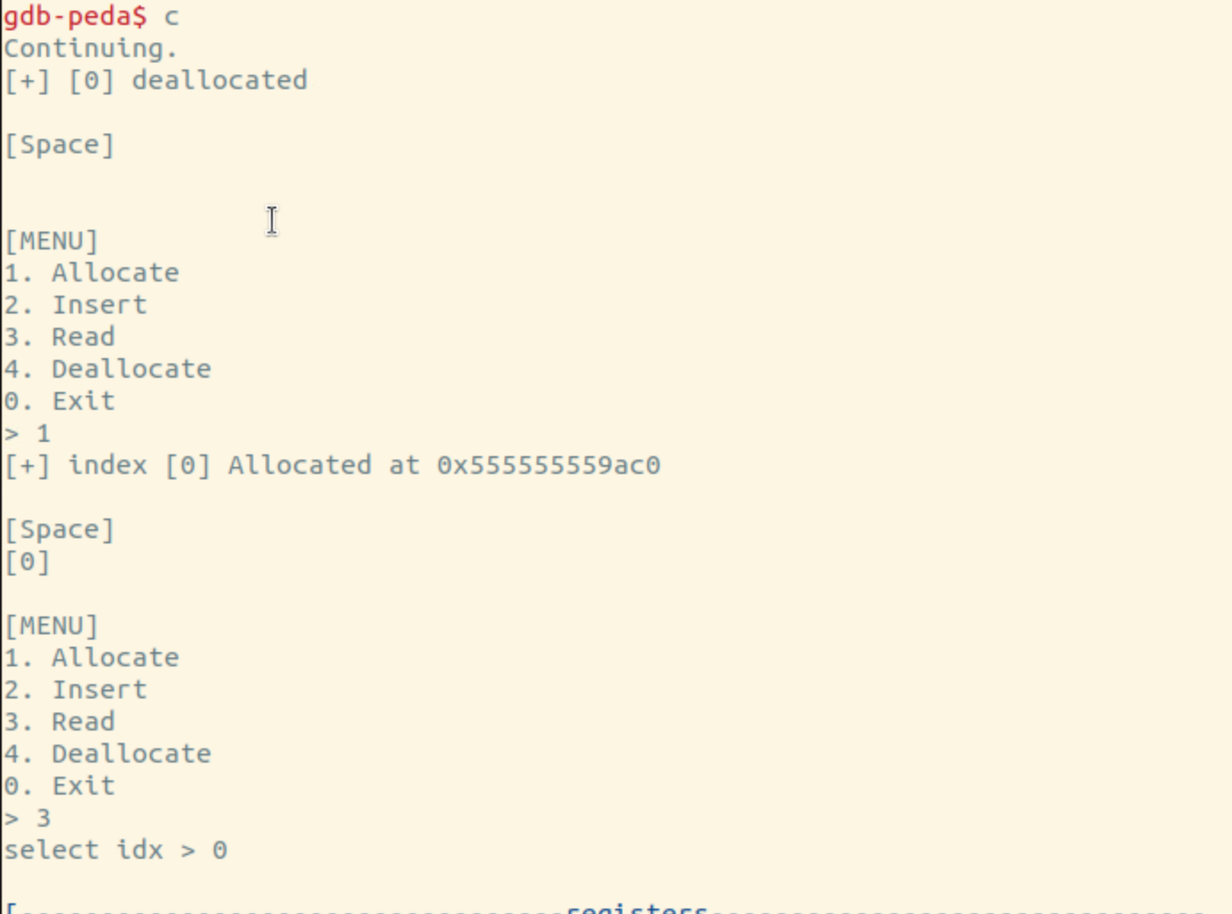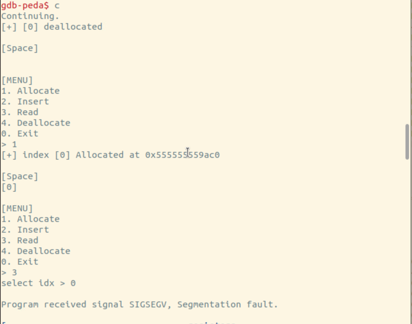 컨티뉴 해서 삭제한 인덱스의 내용을 확인하려 하니까 segmentation 에러가 남