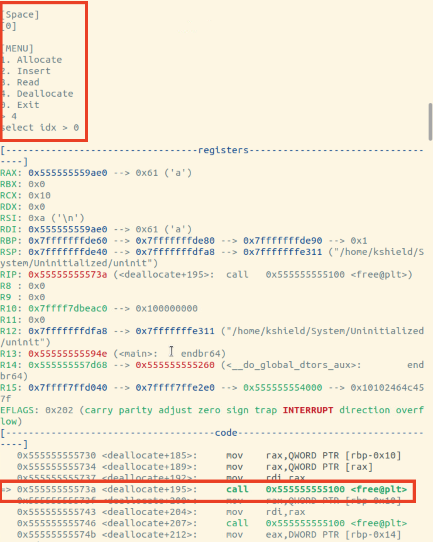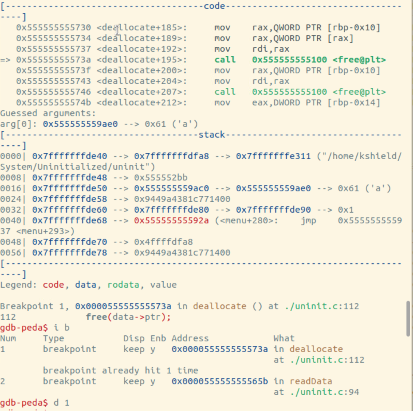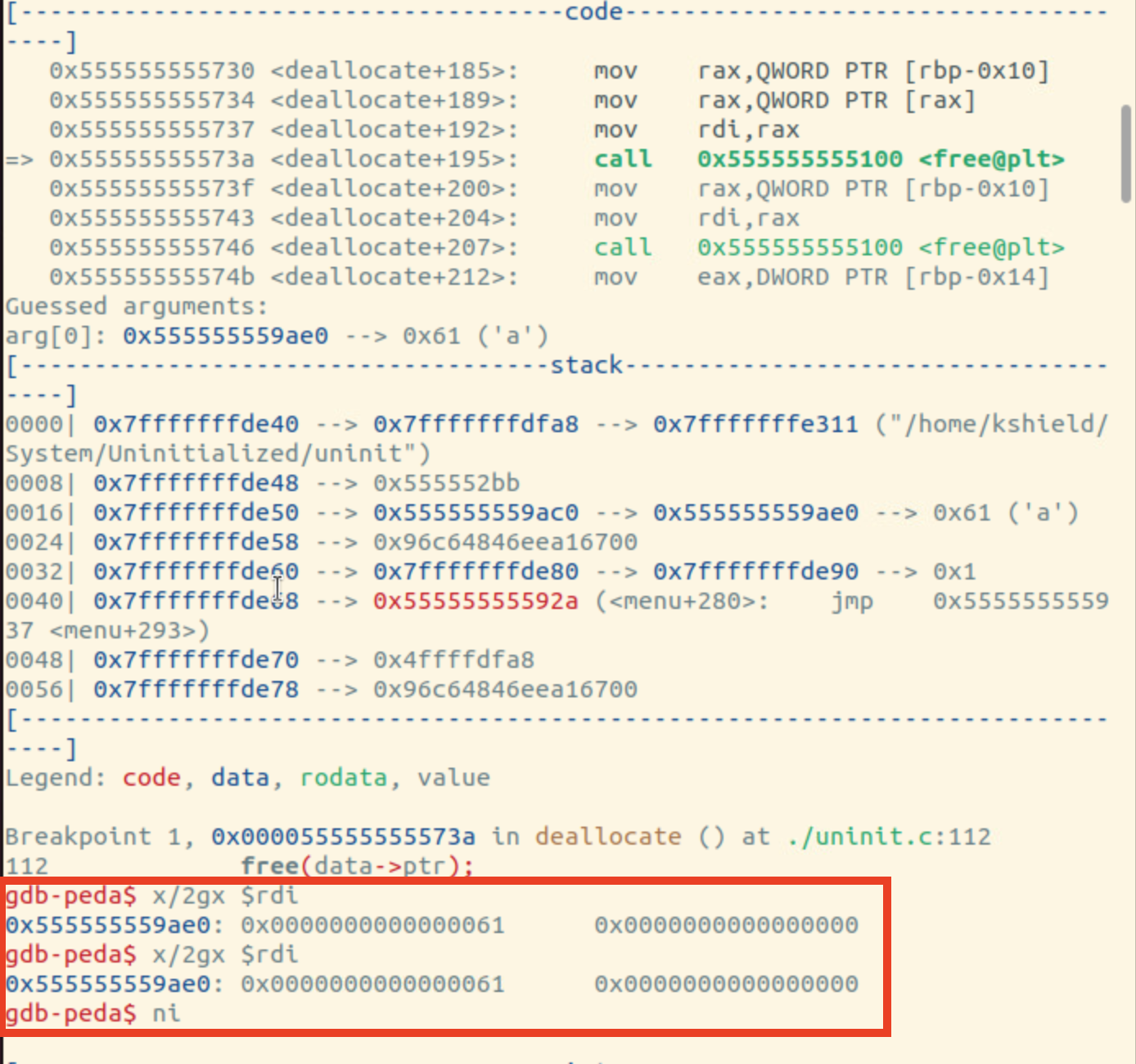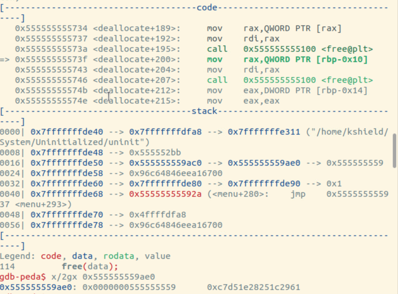 멈춘 위치을 보니까 rdi의 주소값을 뭐 어떻게 했는데 fault가 떴기 때문에 rdi에서 문제가 있음을 알 수 있음