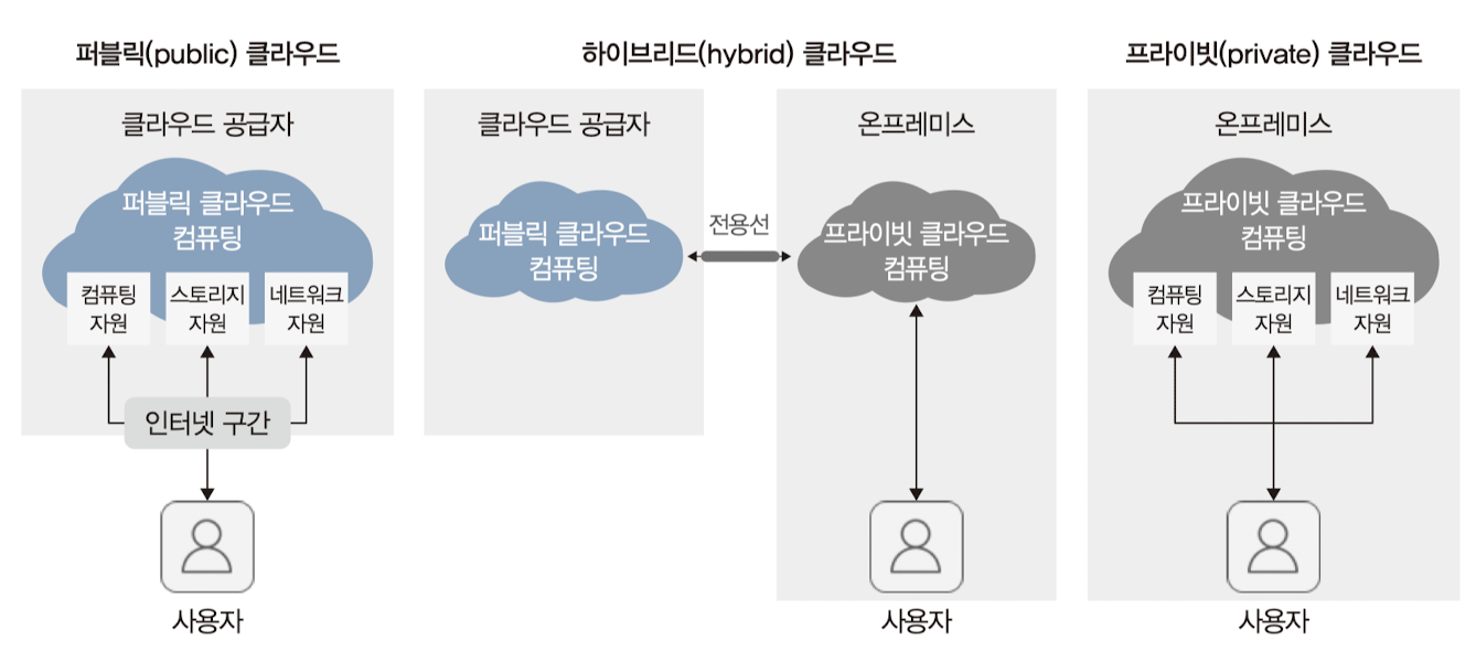 클라우드 컴퓨팅 서비스를 제공할 때, IT 리소스의 소유권, 규모, 접근 방법, 이용 범위 등에 따라 배포 모델을 구분함