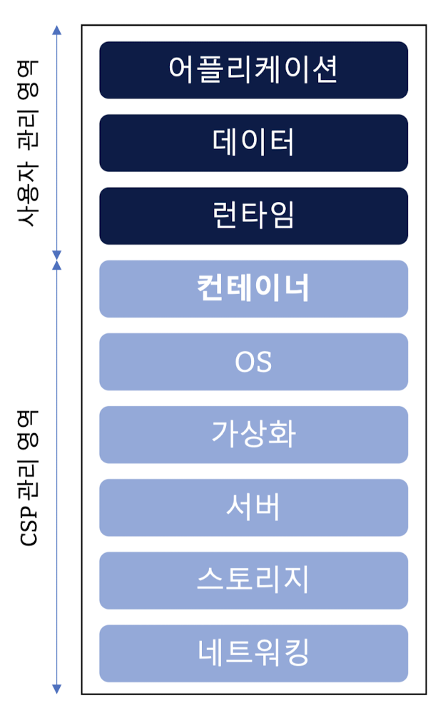 - 사용자가 컨테이너 기반 애플리케이션을 구동하기 위한 IT리소스 및 기술을 제공하는 모델